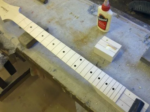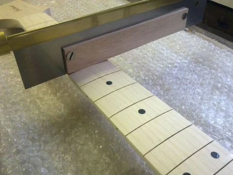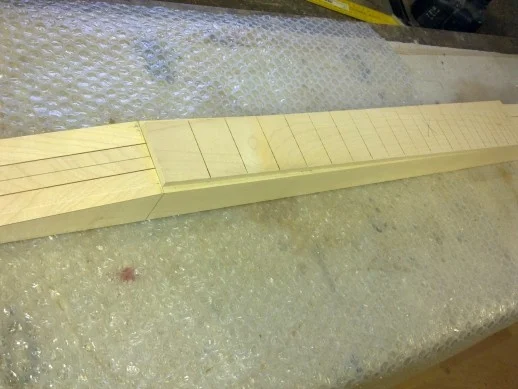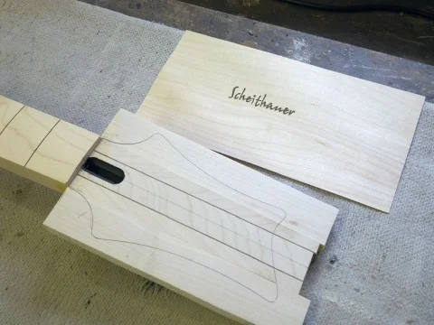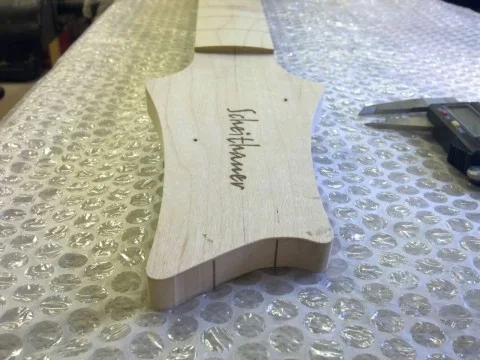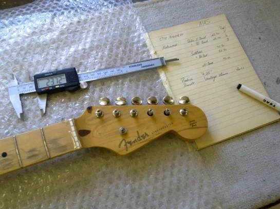 Um das Shaping des Halses für mich perfekt hinzubekommen, habe ich heute den Hals einer meiner Strats, mit dem ich am besten klar kommen, abgeschraubt und diesen als Vorbild für die Anfertigung zum Gitarrenbauer geschickt.