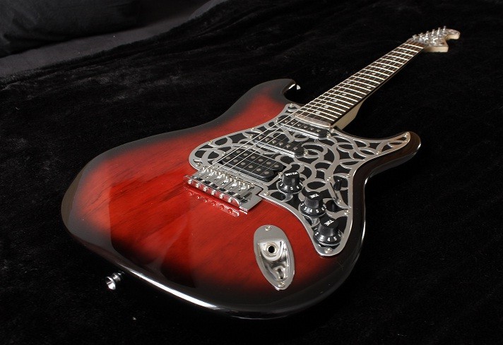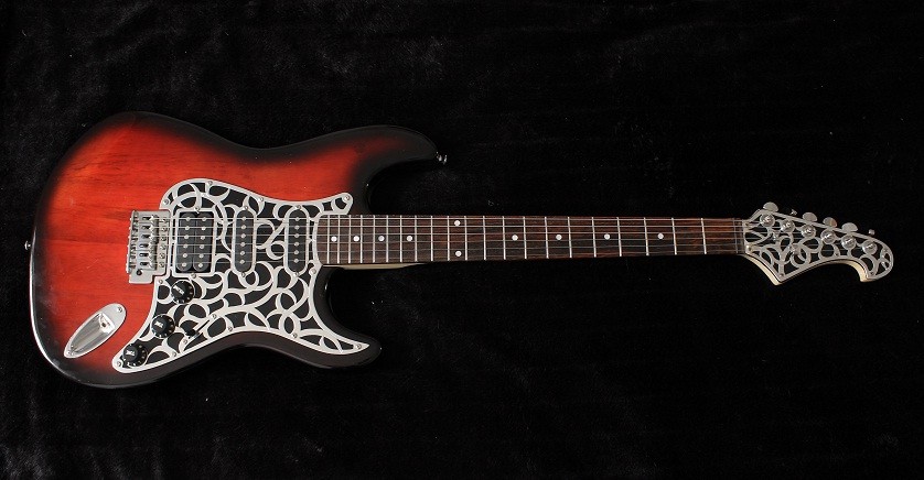 Dies ist die Gitarre meiner Freundin. Sie wollte gerne eine haben also hab ich ihr diese (Marke Tenson) für 50 EUR bei ebay gekauft. Sie hat einen Graphtech Sattel bekommen und ein paar Grover Tuner die ich noch liegen hatte. Und für die Optik ein neues Pickguard und Headstock Cover. Leider dient die Strat nur zur Deko weil meine Freudin nicht spielt. Die Saitenlage ist astrein ist und die Bespielbarkeit auch. Nur die Tonabhnehmer sind schrecklich.