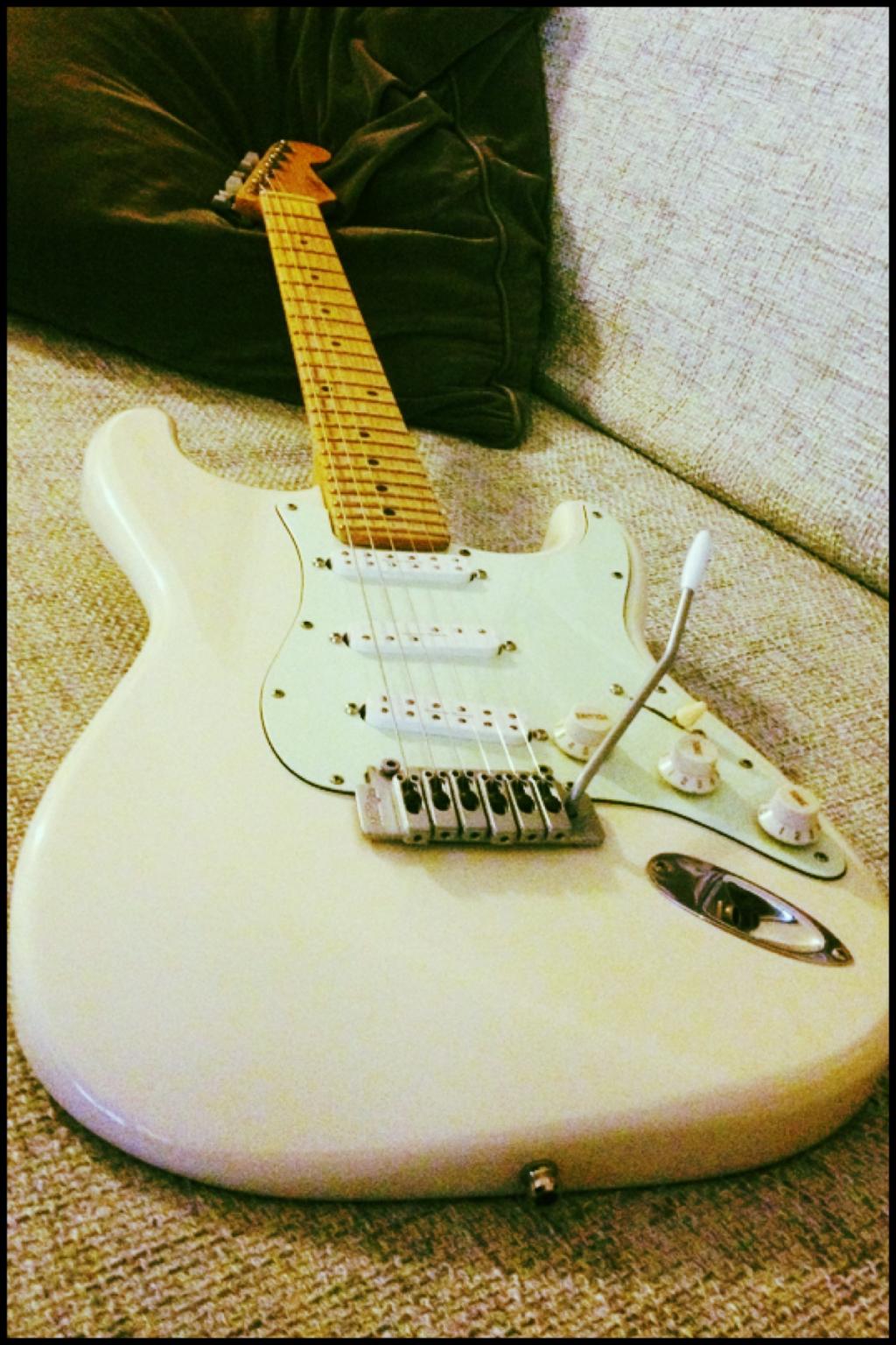 DSC03208.jpgDSC03207.jpgDSC03209.jpgDSC03212.jpgDSC03204.jpgDas Ergebnis meines neuesten Projekts, die "Frankenstrat". Hier auf den Bildern noch nicht ganz fertig, ich bitte um Nachsicht. Gut: Der Rockinger Texas Twister Halspickup klingt unglaublich gut. Schlecht: Das Tremolo ist (noch) nicht wirklich stimmstabil zu gebrauchen.