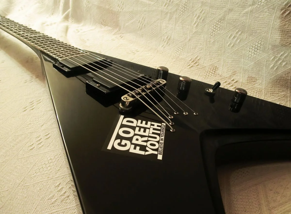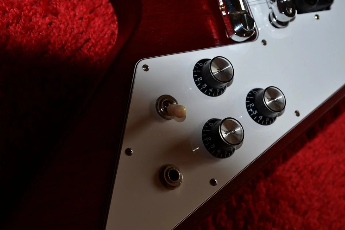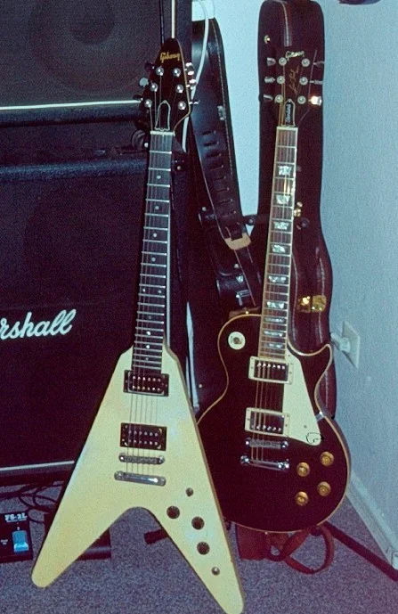 - Gibson Flying V ´83 (wirklich nichts Besonderes, aber für 350 € ein Schnäppchen)