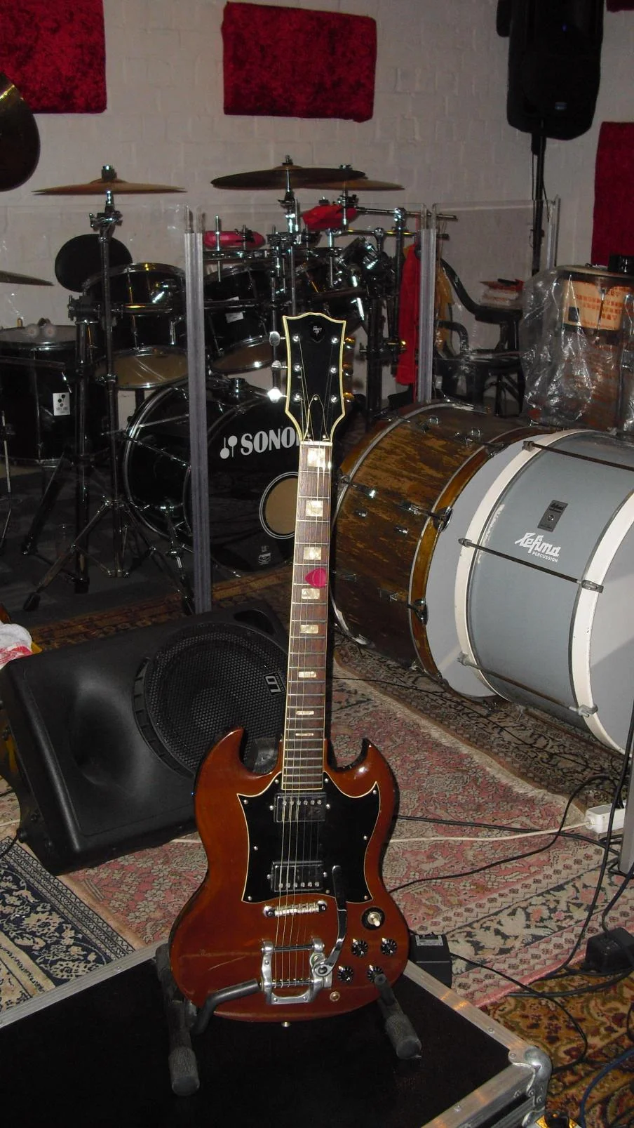 Ich bin kein allzu großer Freund von diesen "drei Humbucker Paulas", aber das Foto ist der Hammer. Da passt einfach alles!
