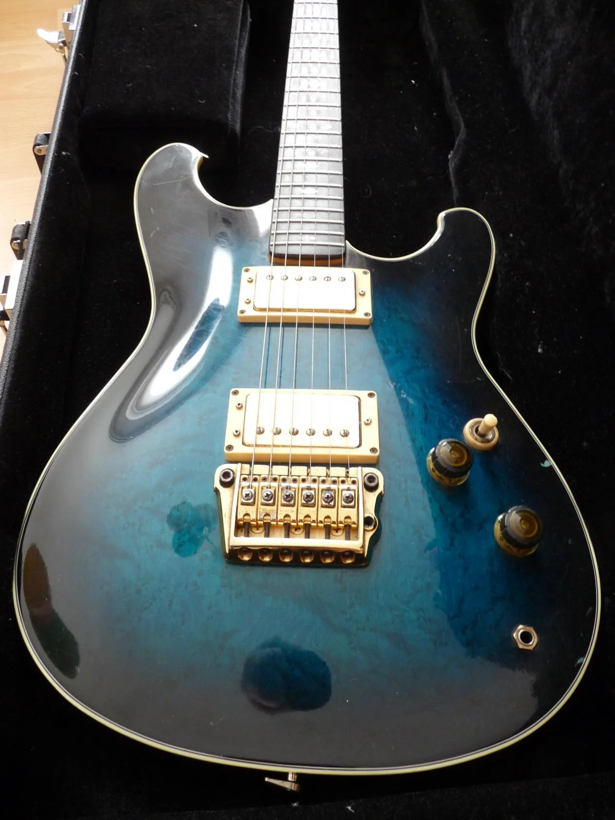 Und zu guter Letzt ein echtes Schätzchen, diese Gitarre besitze ich sogar noch länger als die Fender: Eine Ibanez RG7 681 Ltd. Will man dem I-Net glauben, ein ziemlich rares Teil. Auf jeden Fall eine geile Gitarre