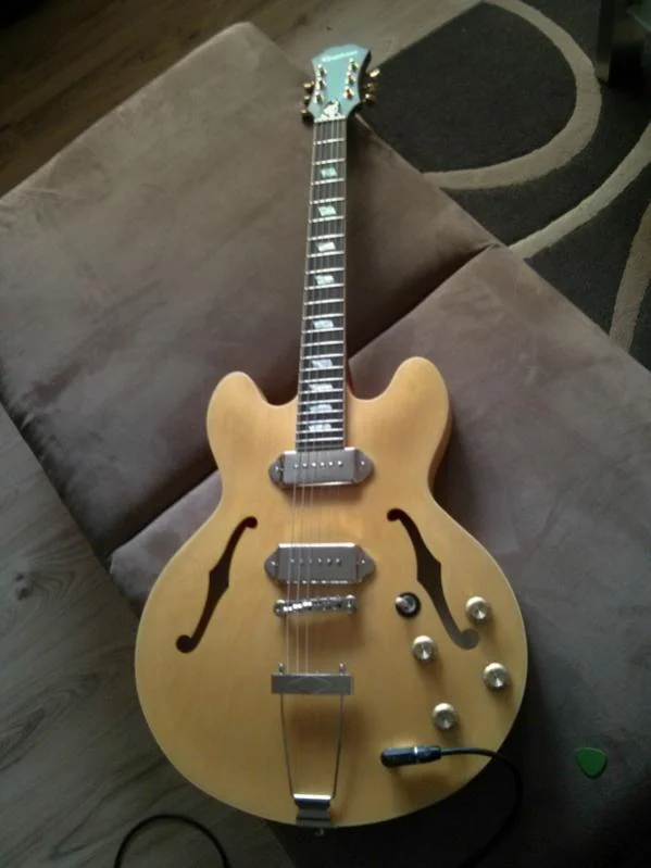Mit nach Hause genommen habe ich eine Epiphone Casino, sie hat sich gegen eine The Dot und die Sheraton II klar durchgesetzt. Was fehlt ist noch der passende Amp dazu.