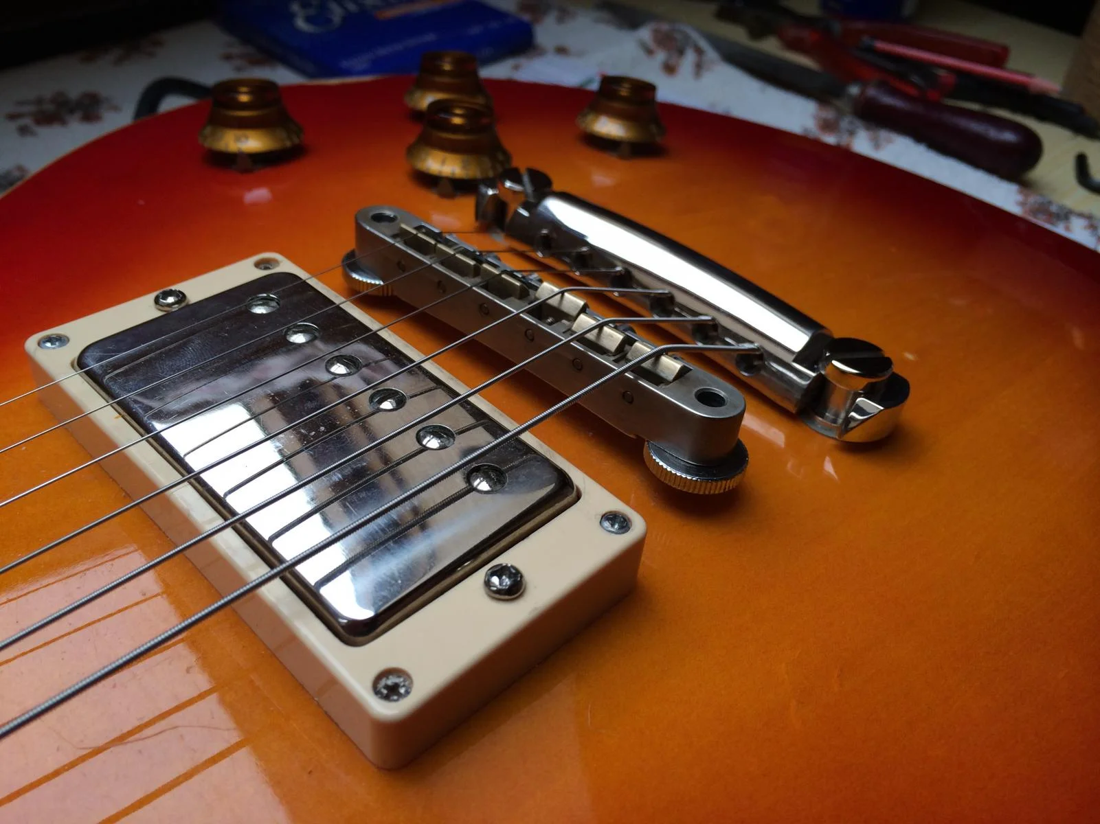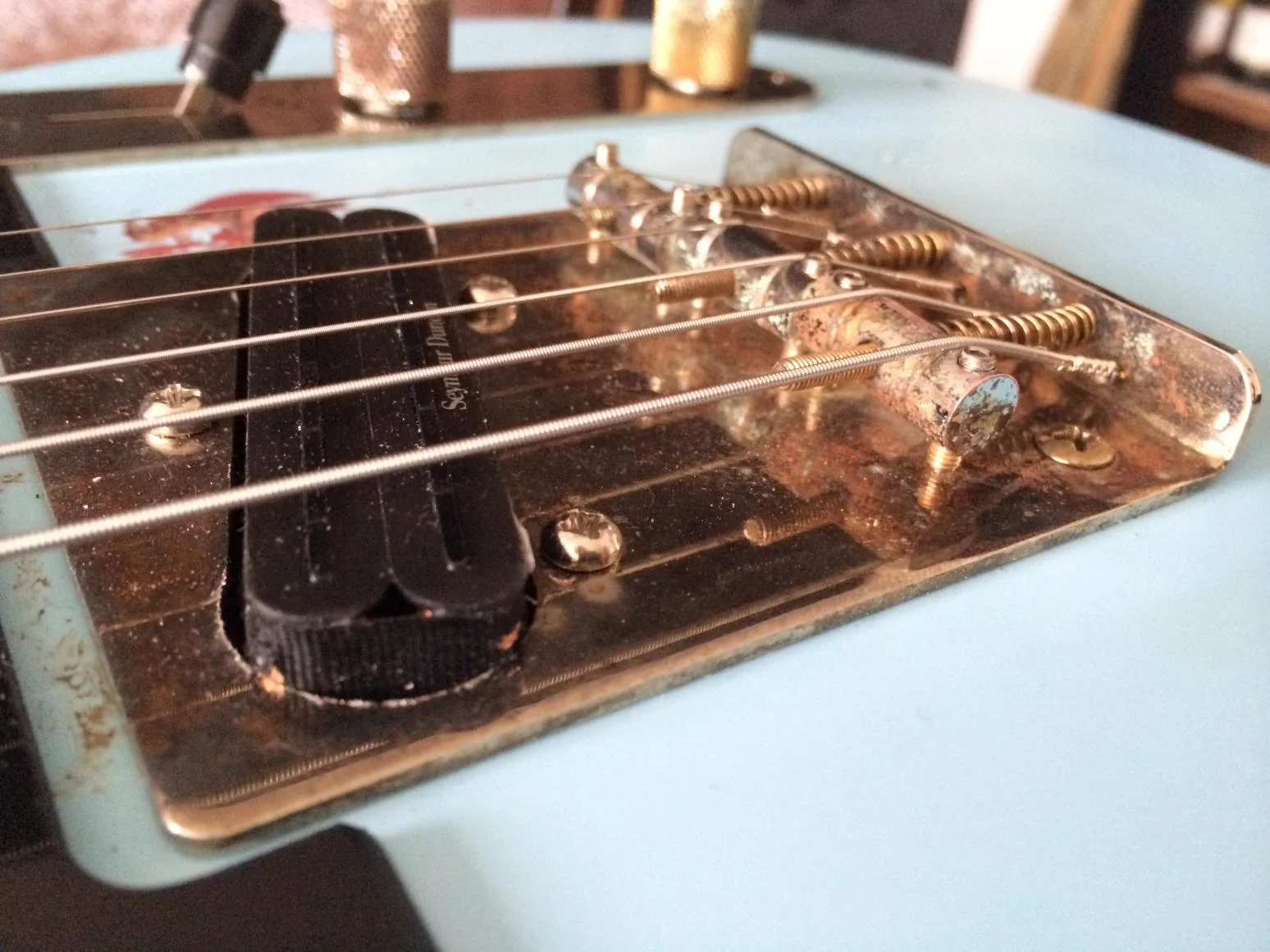 Ohne Pickguard und Zebra/Rev Zebra Seymour Duncan APH-2 Pro Pickups statt den Chrom 57'er...