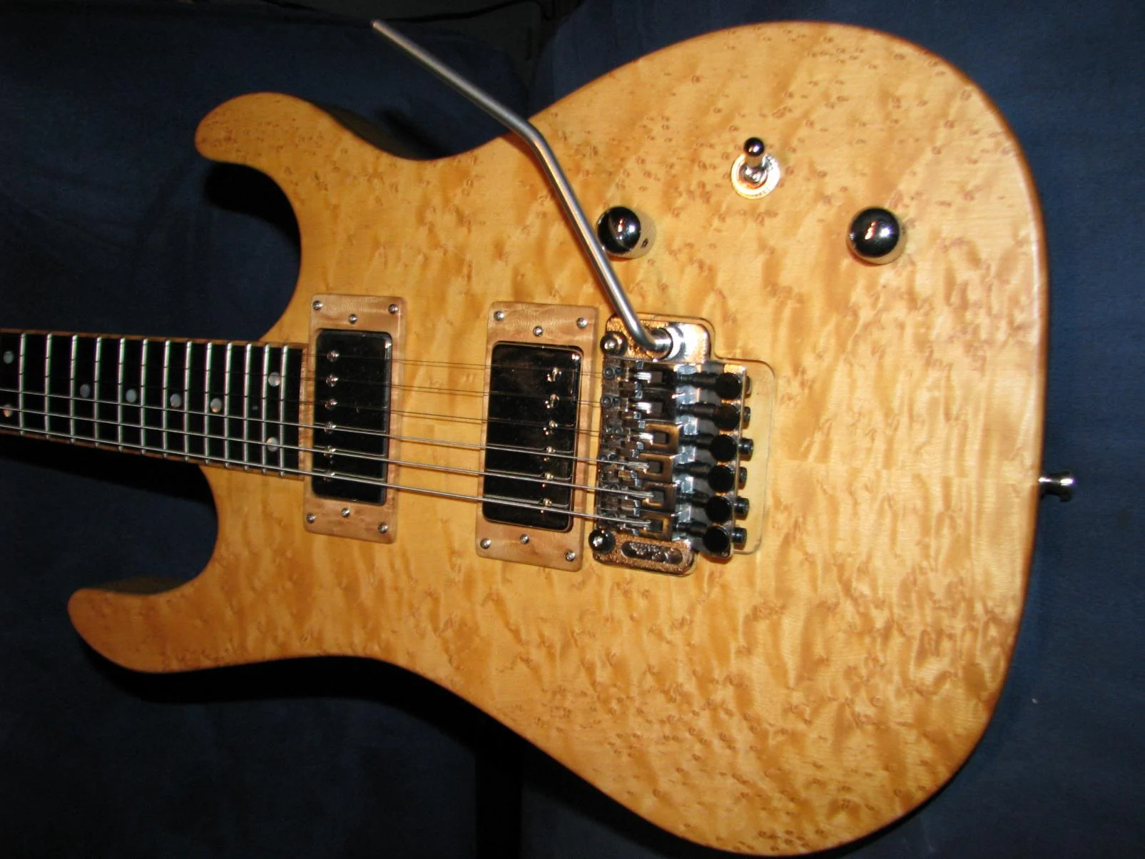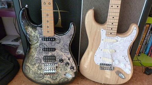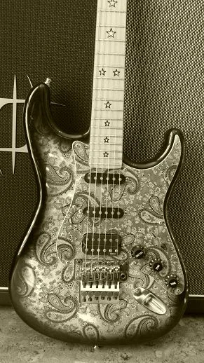Zur Gitarre selbst ist zu sagen das sie echt super gebaut ist, die eingebauten Effekte sind richtig schräg und eignen sich hervorragend wenn man psychdelische Sounds mag. Das eingebaute WAH-WAH zu bedienen erfordert natürlich etwas Übung ist aber wirklich ein Highlight. Ich mag besonders den Repeater, der nicht wie ein Vibrato langsam abflacht sondern wirklich den zuletzt angeschlagenen Akkord oder Einzelton wiederholt. Den Distortion Effekt nutze ich weniger, aber er ist wirklich klasse. Die eingebaute 9V Batterie unter dem Pad aufder Rückseite ist leicht zu tauschen, die Gitarre hat nen schönen schlanken Hals und die abgebildete Kopfplatte mit den Perlmutteinlagen ist ja wohl ein echt Hingucker.