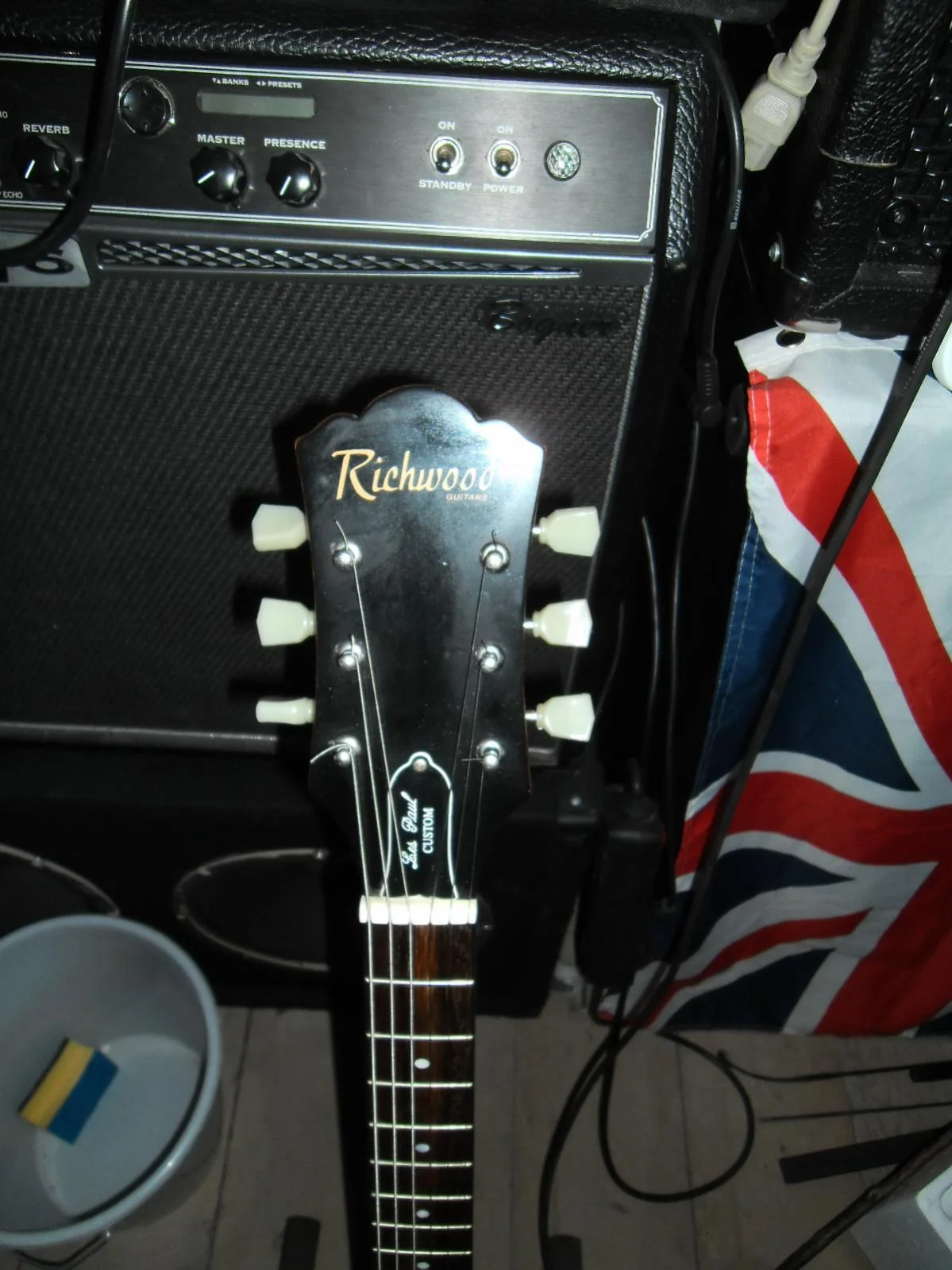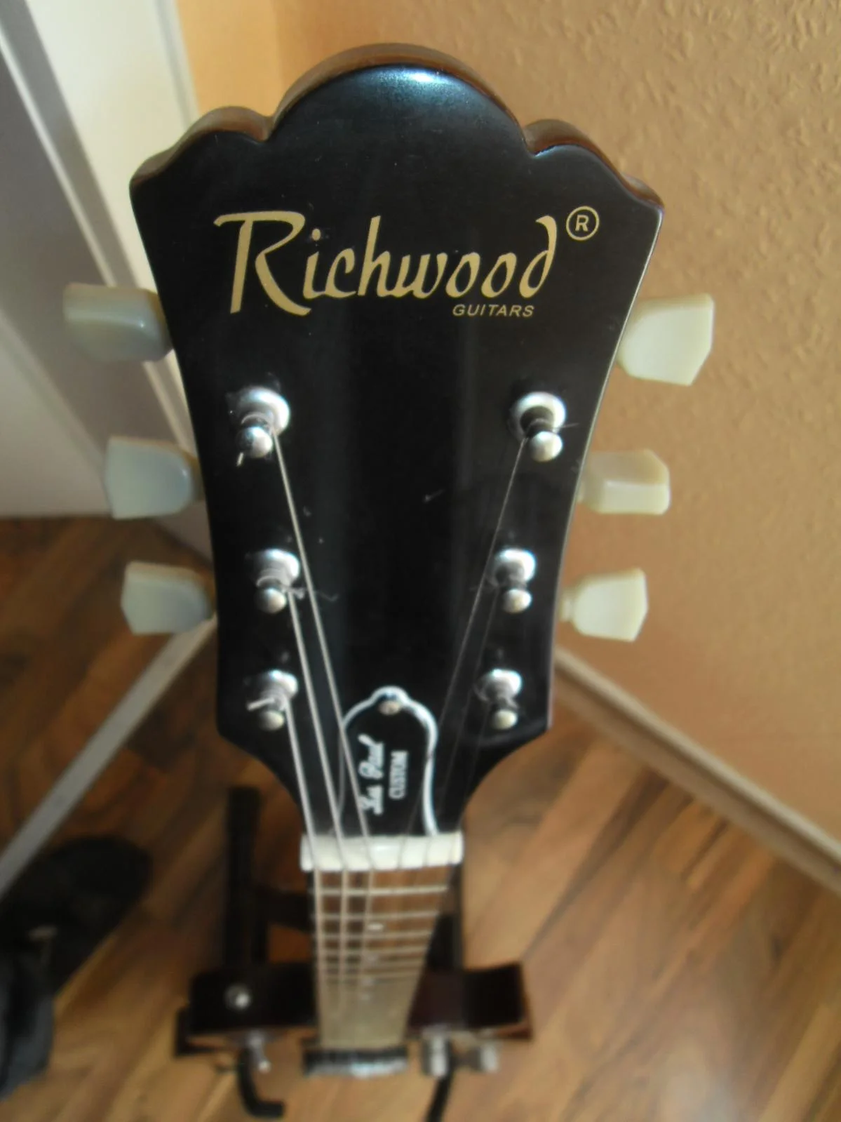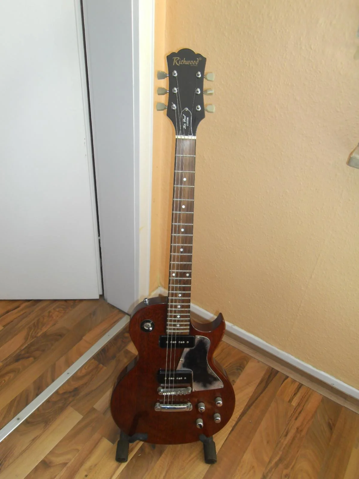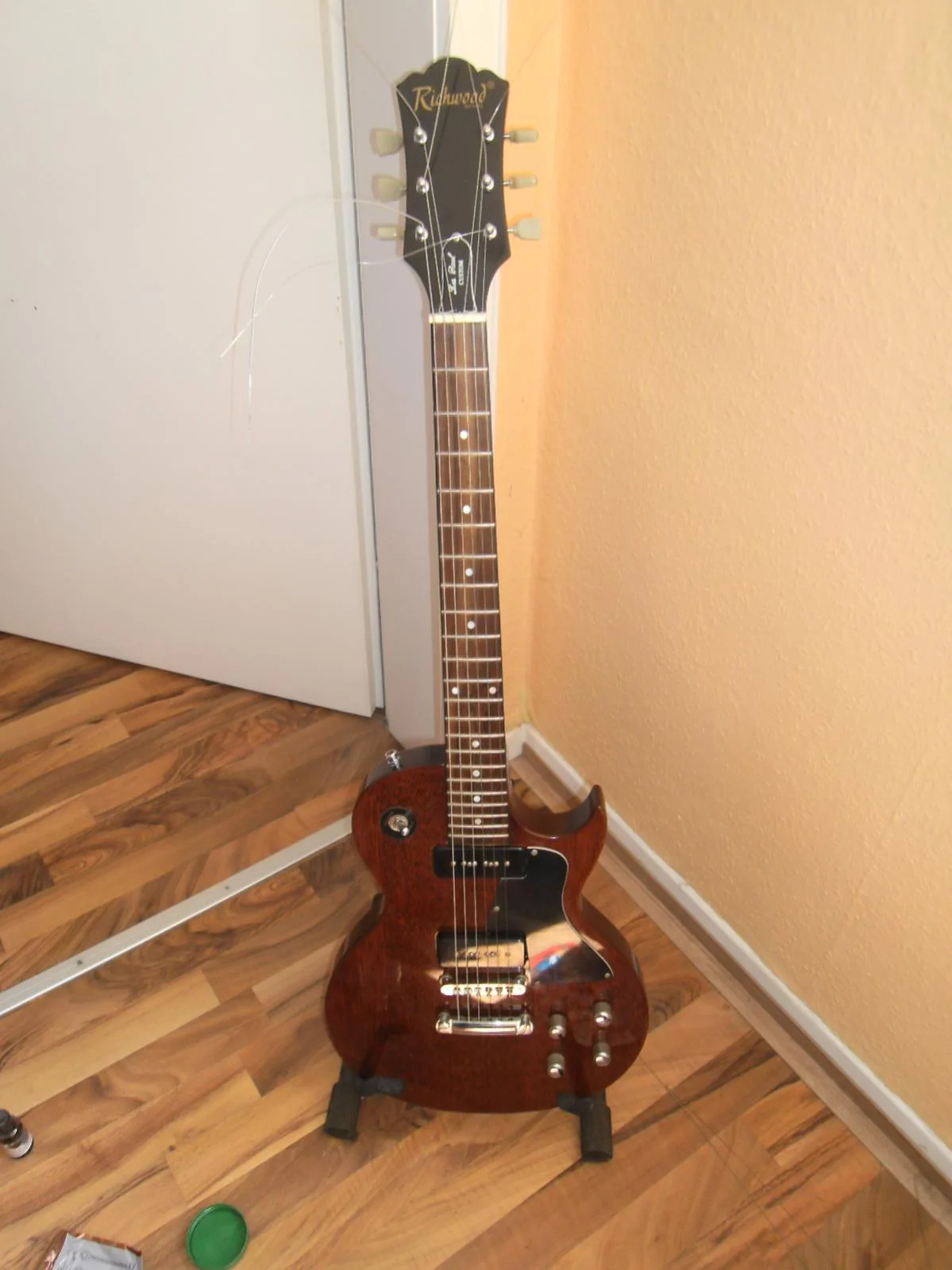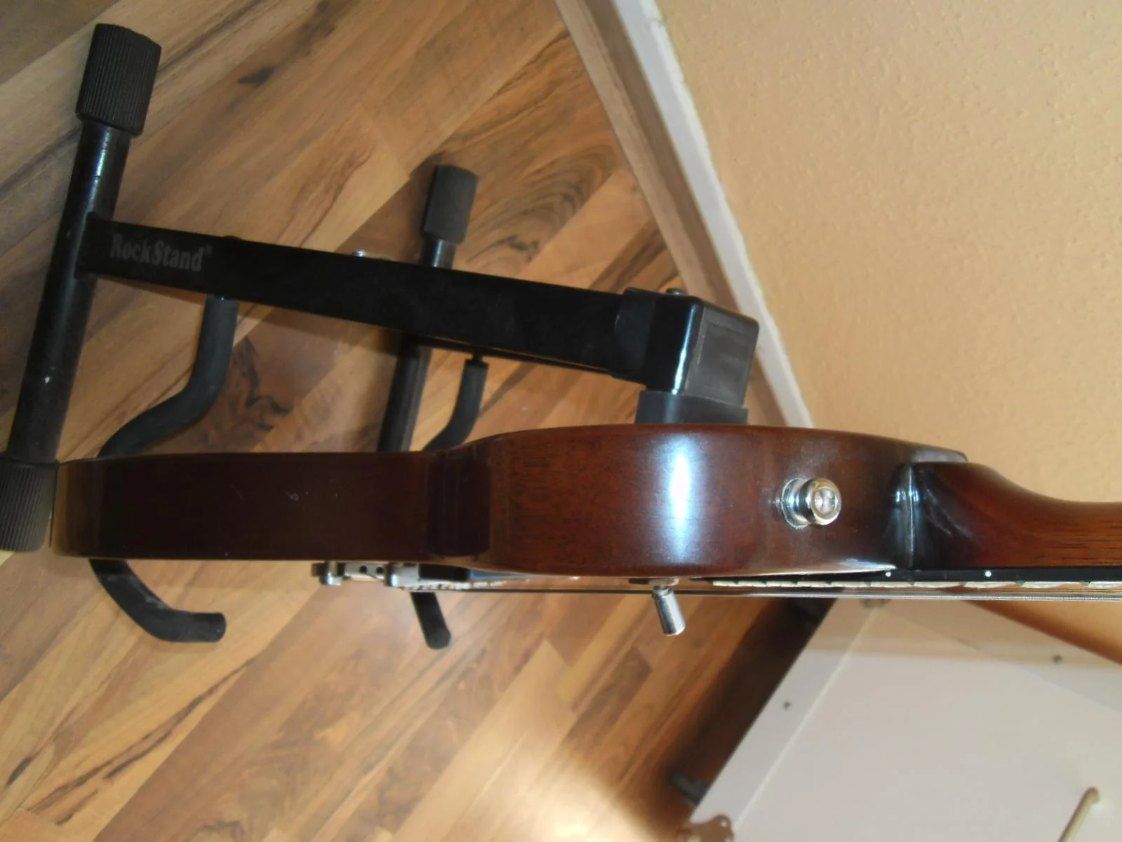 Auf Anhieb ersichtlich meiner Meinung nach Sattel gewechselt, Hals entlackt, Body furniert und neulackiert, neues Pickguard samt Elektronik und eben das Wilkinson. Beim Hals wundern mich nur die Dots, vielleicht replacement mit Fender decal?