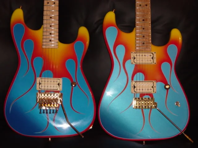 Body aus geflammter Erle, Hals aus geflammtem Ahorn. Leider kommt die Maserung des Bodies aufgrund fehlender Sonne nicht richtig zur Geltung. Eine extrem leichte (3KG), komfortabel zu spielende Gitarre mit viel Power durch den Dommenget Musclebucker mit über 21 KOhm. PU ist splittbar. Die Farbe nennt sich Caribbean Blue.