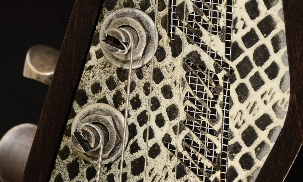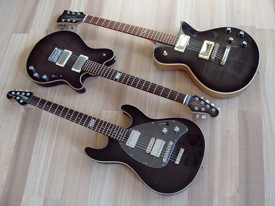 Mir war danach, gerade durch die two-tone sunburst Lackierung, optisch eine alte Strat zu kreieren, die Form der Kopfplatte ist meine Homage an G&L.