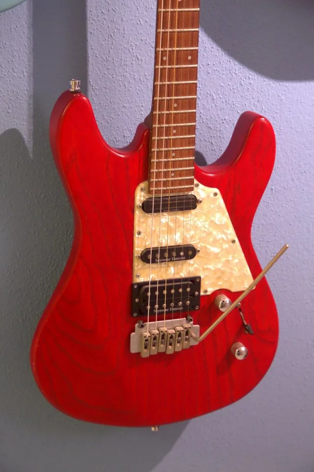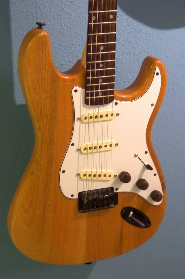Esche-Korpus, Ahornhals mit Palisandergriffbrett. Jetzt sollte ich mal das Tremolo wechseln gegen ein besseres. Tuning bis zur neuen Gitarre und so