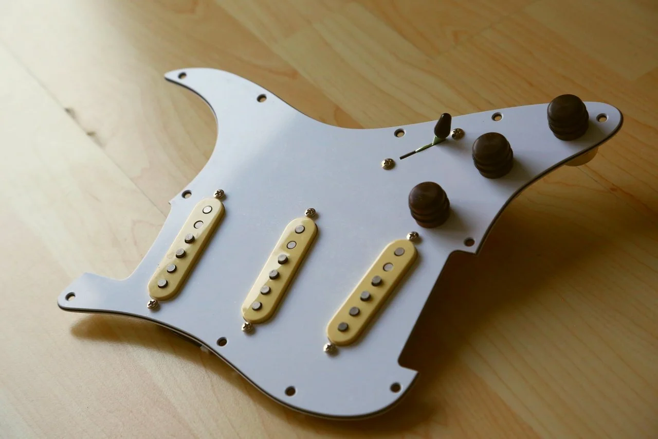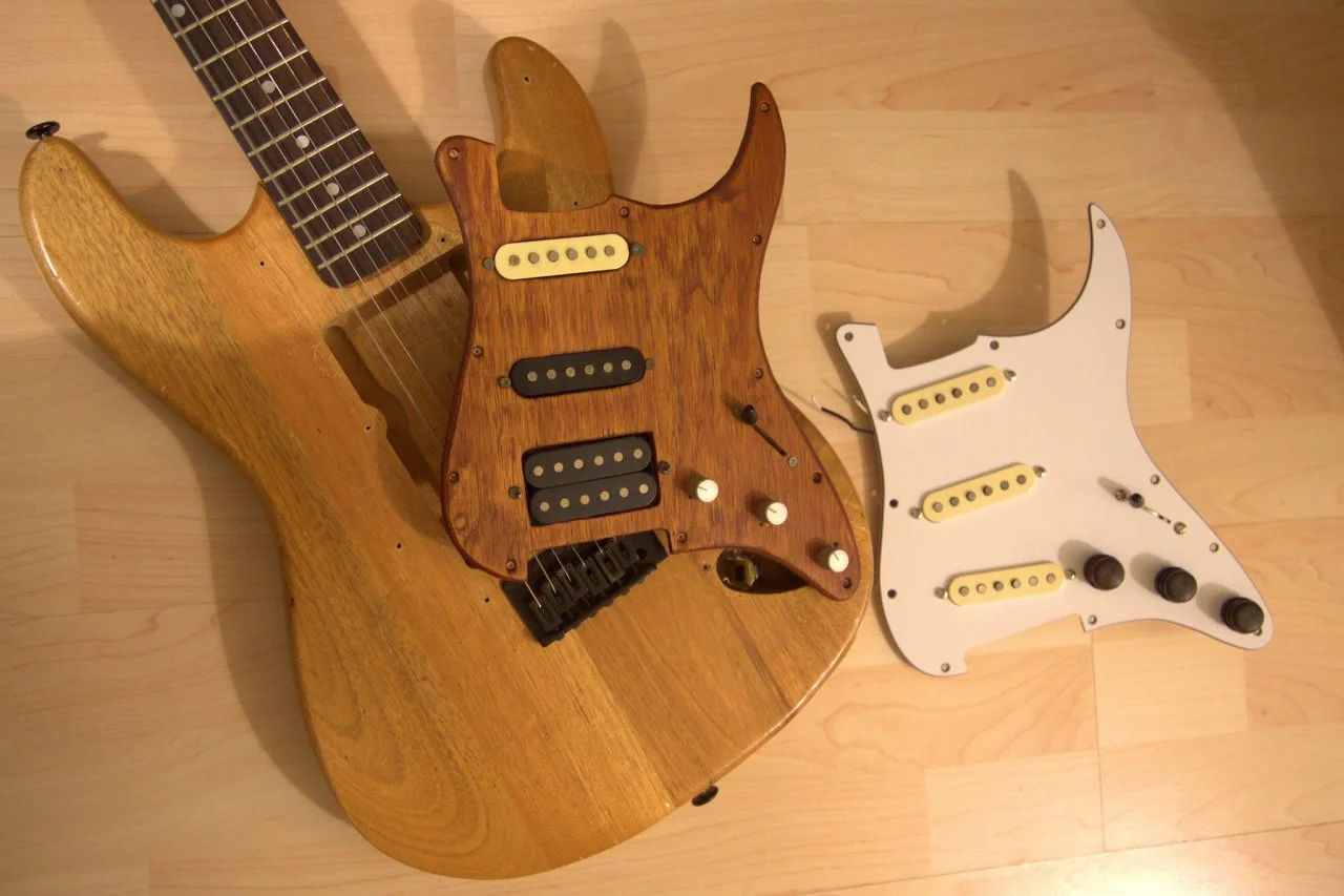 Evt rüste ich sie wieder auf das originale Pickguard um - aber mit den weissen Kappen und Reglern.