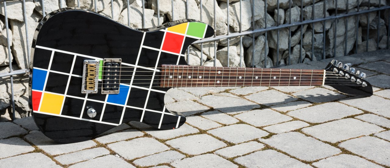 Erlewine Automatic von Anfang 1980er Jahre (gebaut von 1980 - 1982). Angeblich sind nur 150 - 300 Stück gebaut worden. Aber Vorsicht: Legendenbildung um Gitarren ist ja üblich.