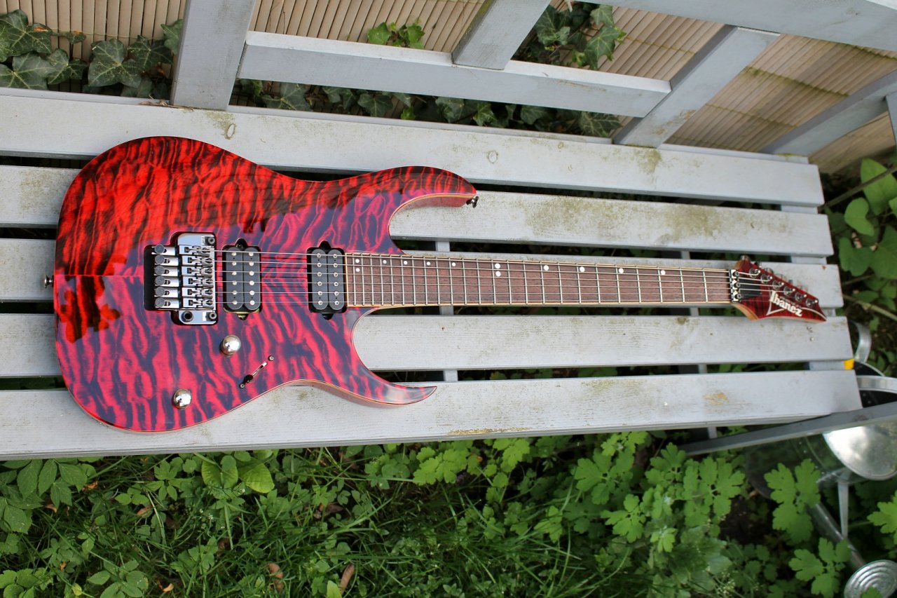 Spaß bei Seite: Sehr cooles Teil! Ich mag die Korpusform mit den Fasen und auch die Headstockform. Die Inlays sind nicht so meins. Schöne Farbe, auch cool mit den Zebras.