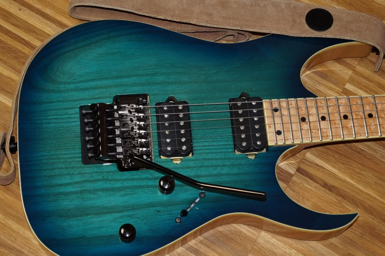 Deine blaugrüne Ibanez ist eine von den Gitten, die bei mir in der Arbeit in der Desktop-HG-Diashow laufen 🙂Meine Gitarrendreifaltigkeit hat sich verändert. Die Fernandes wurde durch eine wunderschöne blau/grüne Ibanez ersetzt. Danke an @take3 für dieses tolle Exemplar.