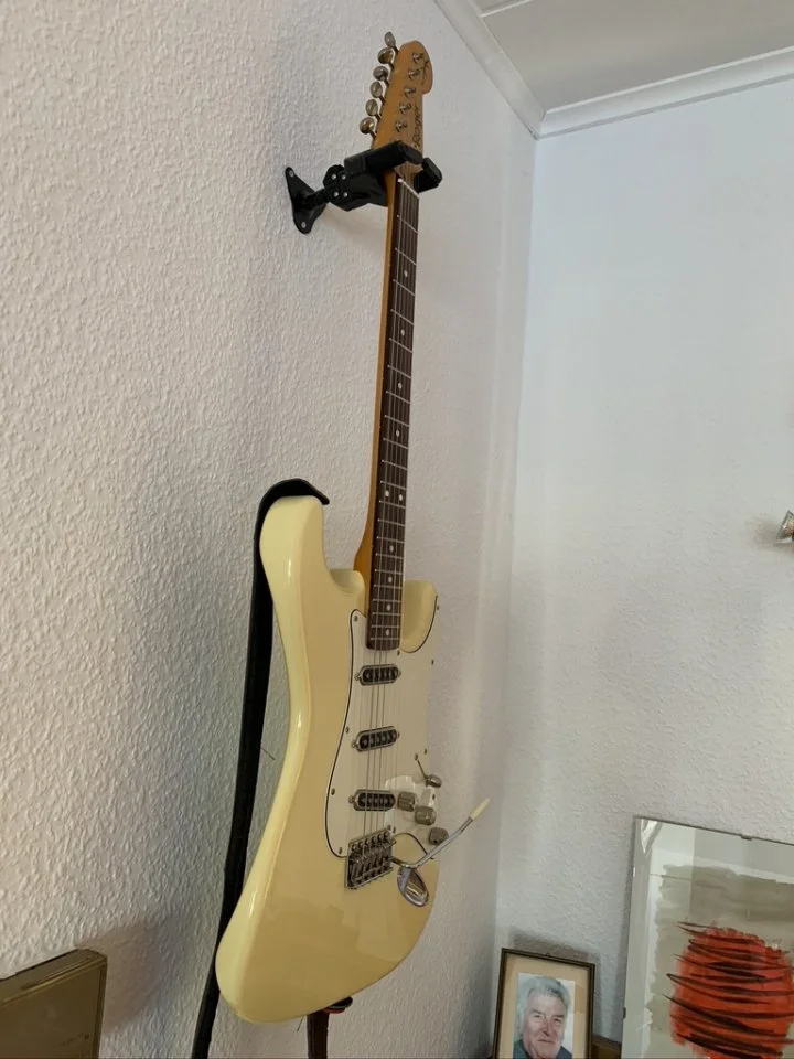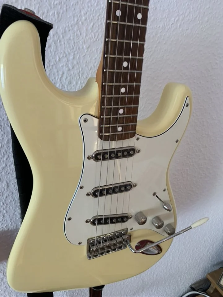 Alt, aber sehr reizvoll. (Noch ohne den späteren Roundback) Eine Statacoustic deluxe mit Piezo und mag.
