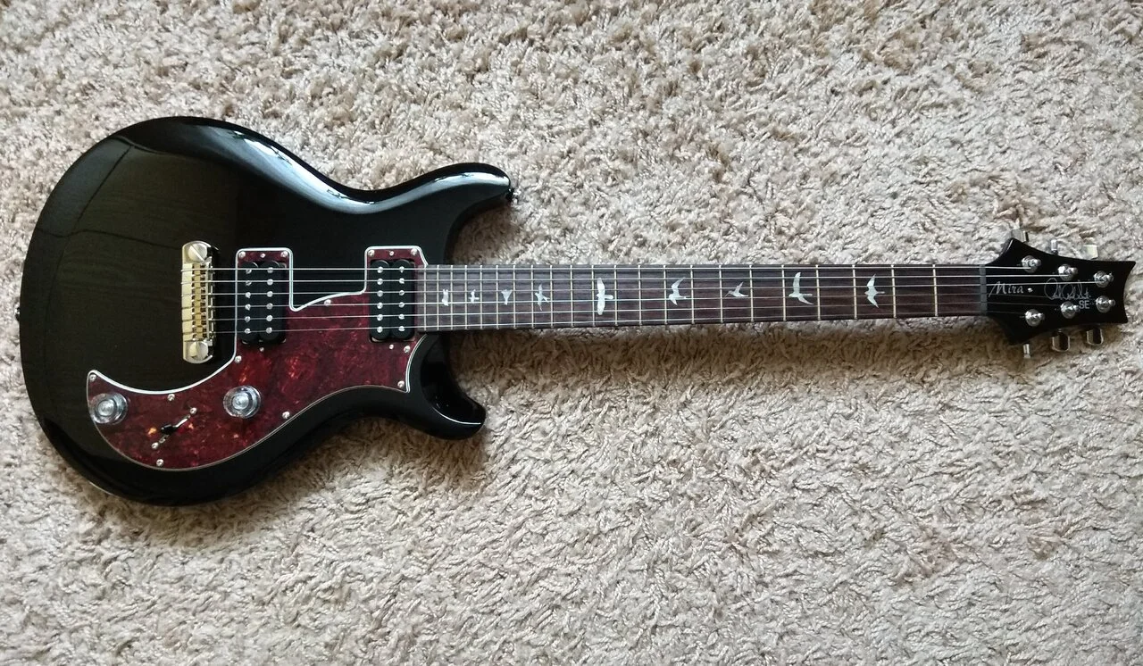 Da wäre es interessant zu erfahren, ob nicht womöglich überschüssige Lukather-Roh-Bodys verwendet wurden. Oder solche, deren Birdseye-Decken unzureichend gevögelt waren fürs transparent-blaue Signature-Modell. Man müsste irgendwie unter den schwarzen Decklack blicken können...quasi eine schwarze SL 1010