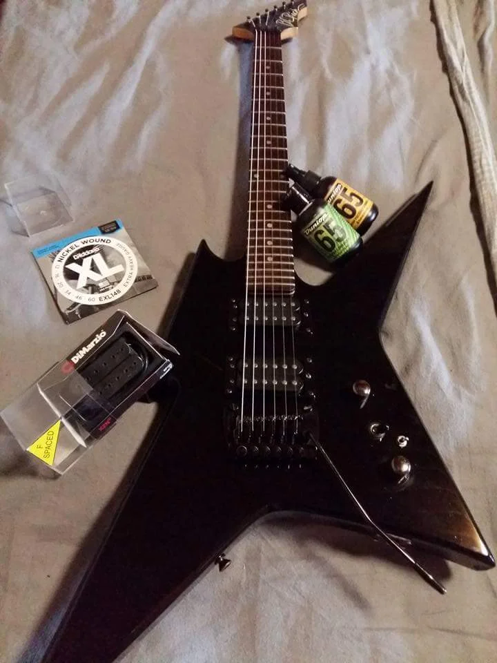 Ende vom Lied (absolute Kurzversion): Ich hab da nochmal 2 Hunnies reingesteckt für ihn, hab dafür in die Fresse gekriegt, weil ich es gewagt habe die Gitarre fertig zu bauen. Nachdem ich darum gebeten wurde und sie schon mindestens 10 Jahre in dem zerdroschenen Zustand herumlag. Ich wusste er kann es sowieso nicht machen, also hab ichs einfach gemacht und viel Liebe reingesteckt.