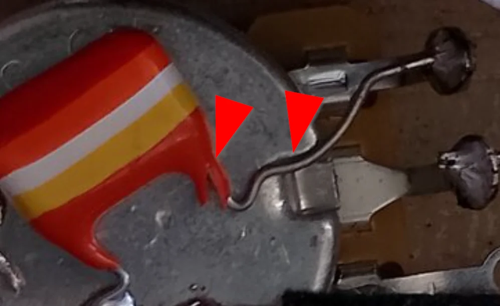 Den Draht habe ich höher gebogen damit es keinen Kontakt gibt. Hat aber vorher anscheinend nicht gestört. Funktioniert alles wie es soll mit 22nf und 250k.
