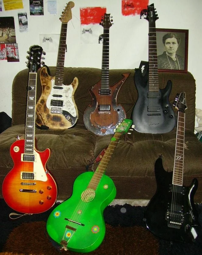und Meine Washburn D11 TBL(bzw die von meinem Pa,die ich aber midnestens doppelt so oft spiel wie er (Die Bücher nebendran gehörn mir nicht^^)