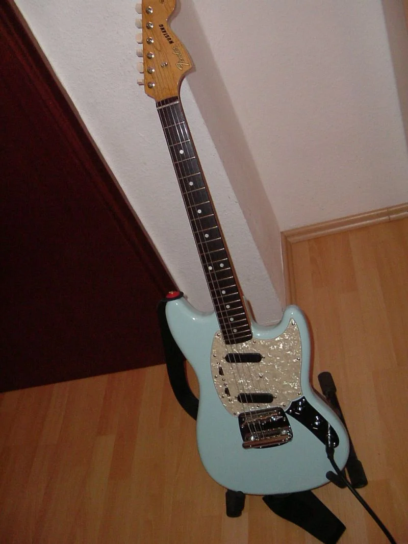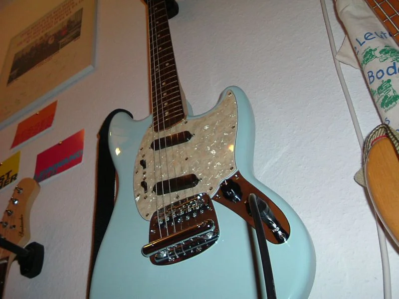 Hier mal Bilder von meiner Mustang. Jetzt mit gelockten Tremolo und 10-52er Saiten![]()