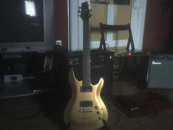 was steht da oben auffer Kopfplatte und was ist das für eine GItarre?