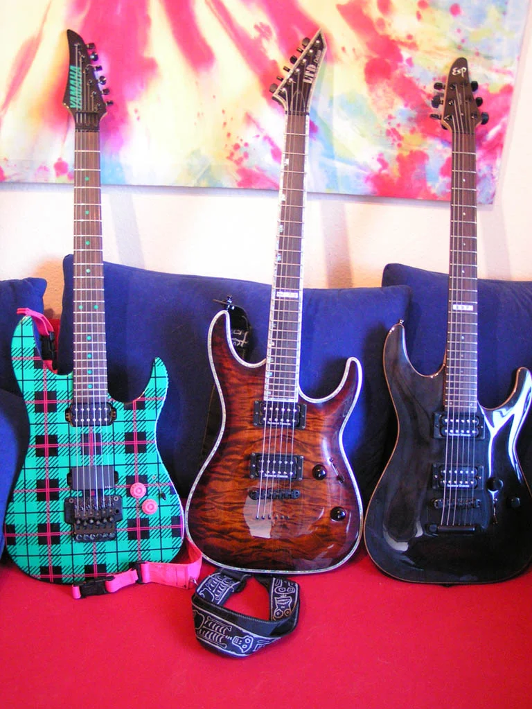 Die Yamaha-Gitarre mit dem Schottenkaro ist eine so genannte Blues Saraceno Signature RGZ820R (oder RGX820R), war irgendwann Anfang der 90er Jahre erhältlich.