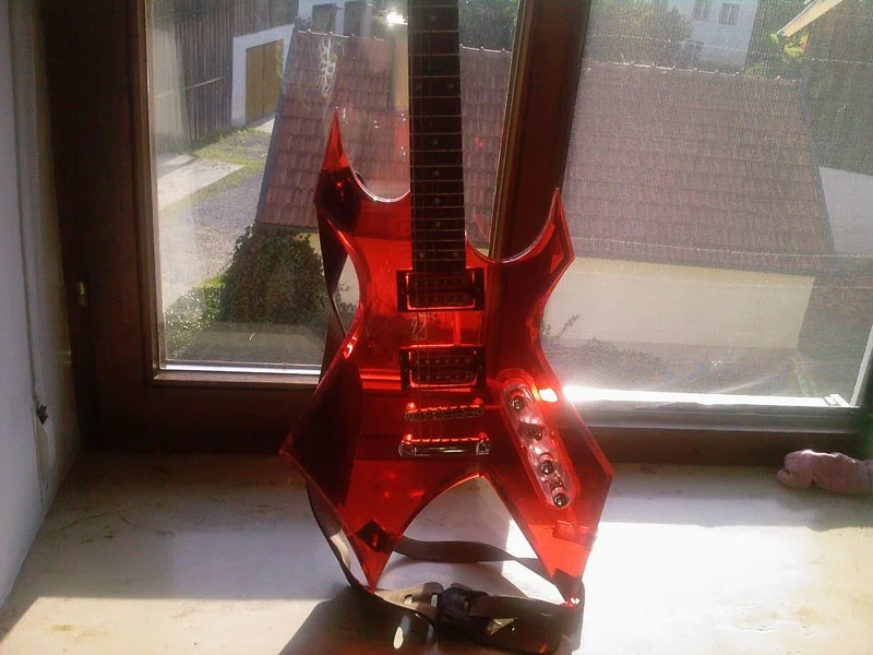 hier einma aus holz und einma acryl (gleiche saiten, amp, settings bla)