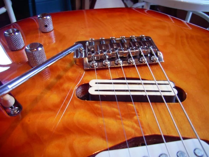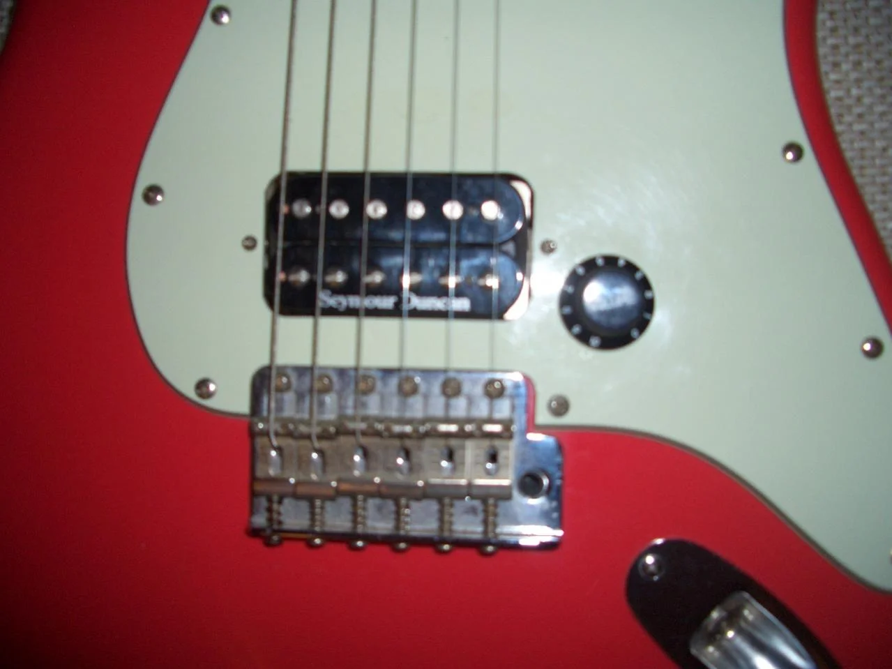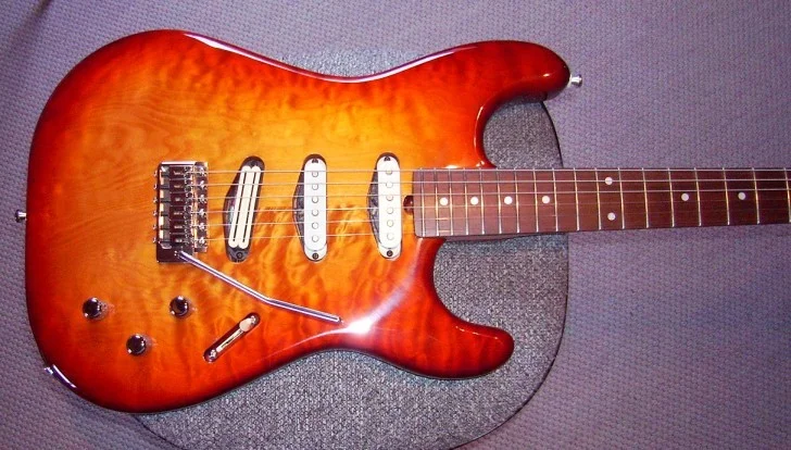 Strat Typ aus massivem Wolkenahorn mit Häussel PU's und ABM Trem. -