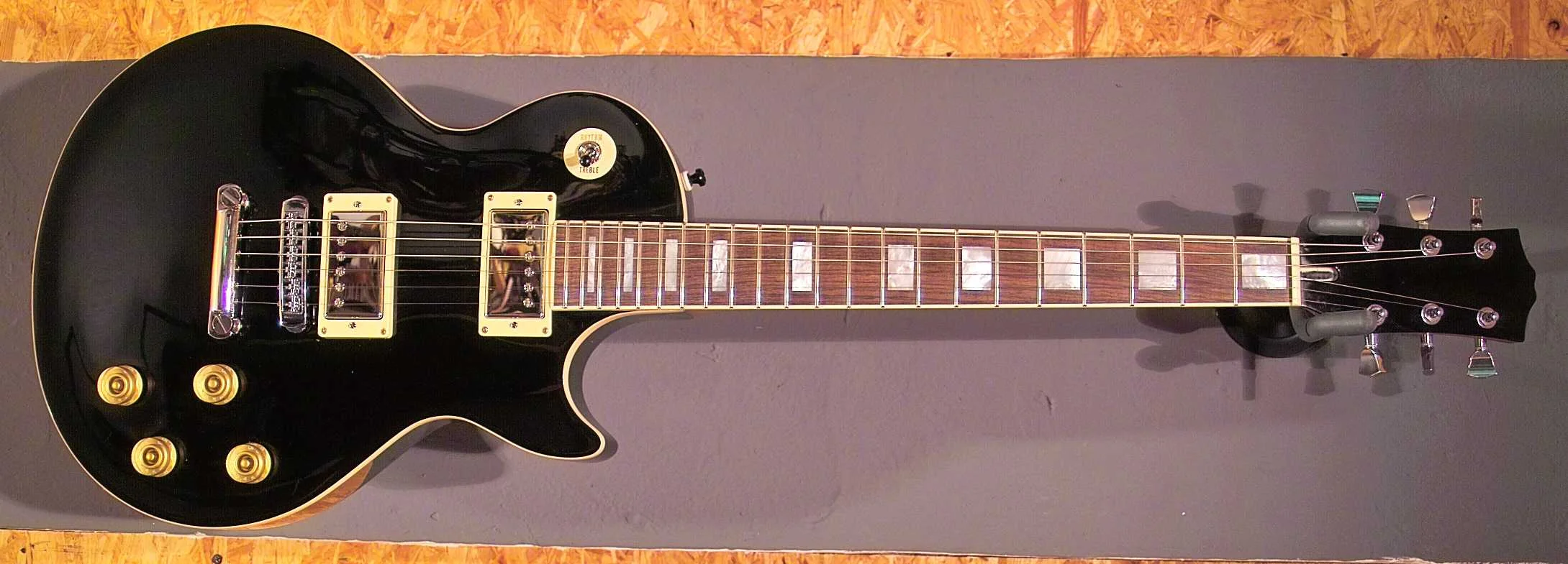 Und last n. L.: Paula Typ aus Mahagoni / Ahornhdecke, Burstbucker 2 und 3, böses Gerät. Besitzer K.H. W. , Lead Git. der einzigen PINK Cover Band Europas. Wenn irgendmöglich, die Band anhören und sehen: Affengeil!! Gruß, murle1