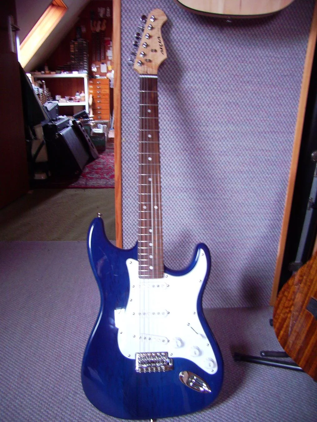 So, gerade eine kleine Foto-Session eingelegt. Für den Hintergrund entschuldige ich mich jetzt schon malDazukommen sollen höchstens noch eine Rockinger Swamp Ash Strat in Sunburst, falls die Jungs und Mädels dort mal so etwas auflegen sollten und eine Custom Tele von Rainer, falls er noch Interesse dran hat, falls nicht, kommt irgendwann noch eine Fender Jaguar ins Haus und dann ist definitiv Ende der Fanenstange. Wenn ich dann noch mehr will, werde ich mich im Bauen versuchen...