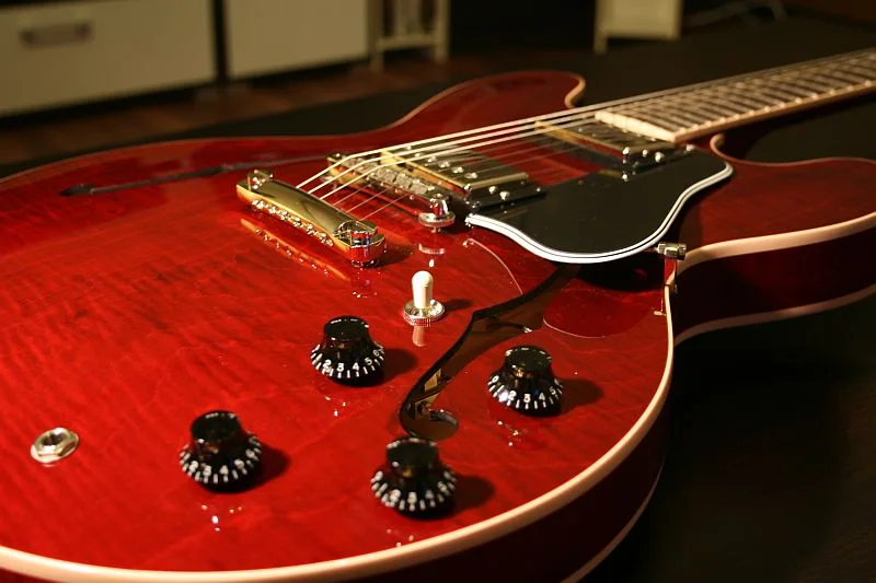 Eine Gibson ES-335 Dot Figured Top in dem schönsten Weinrot das es gibt.