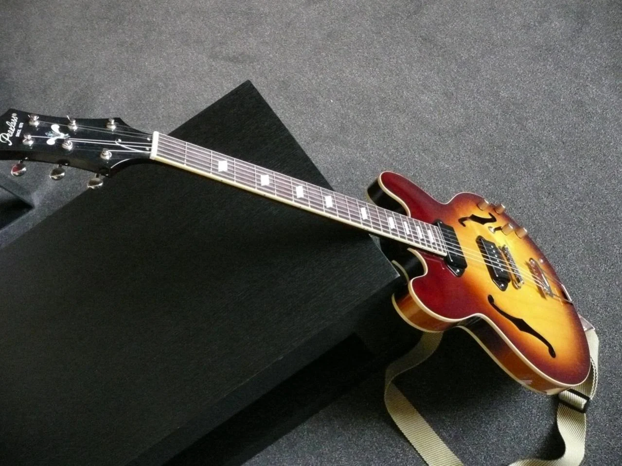 .sehr feine gitarre. da sieht man aber auch, dass es keine reissue ist, allein schon der headstock mit den tunern sieht sehr vintage (gott, irgendwie geht mir das wort dann doch auf den geist) aus. aber die potiknöpfe hast du von nem fender amp geklaut.