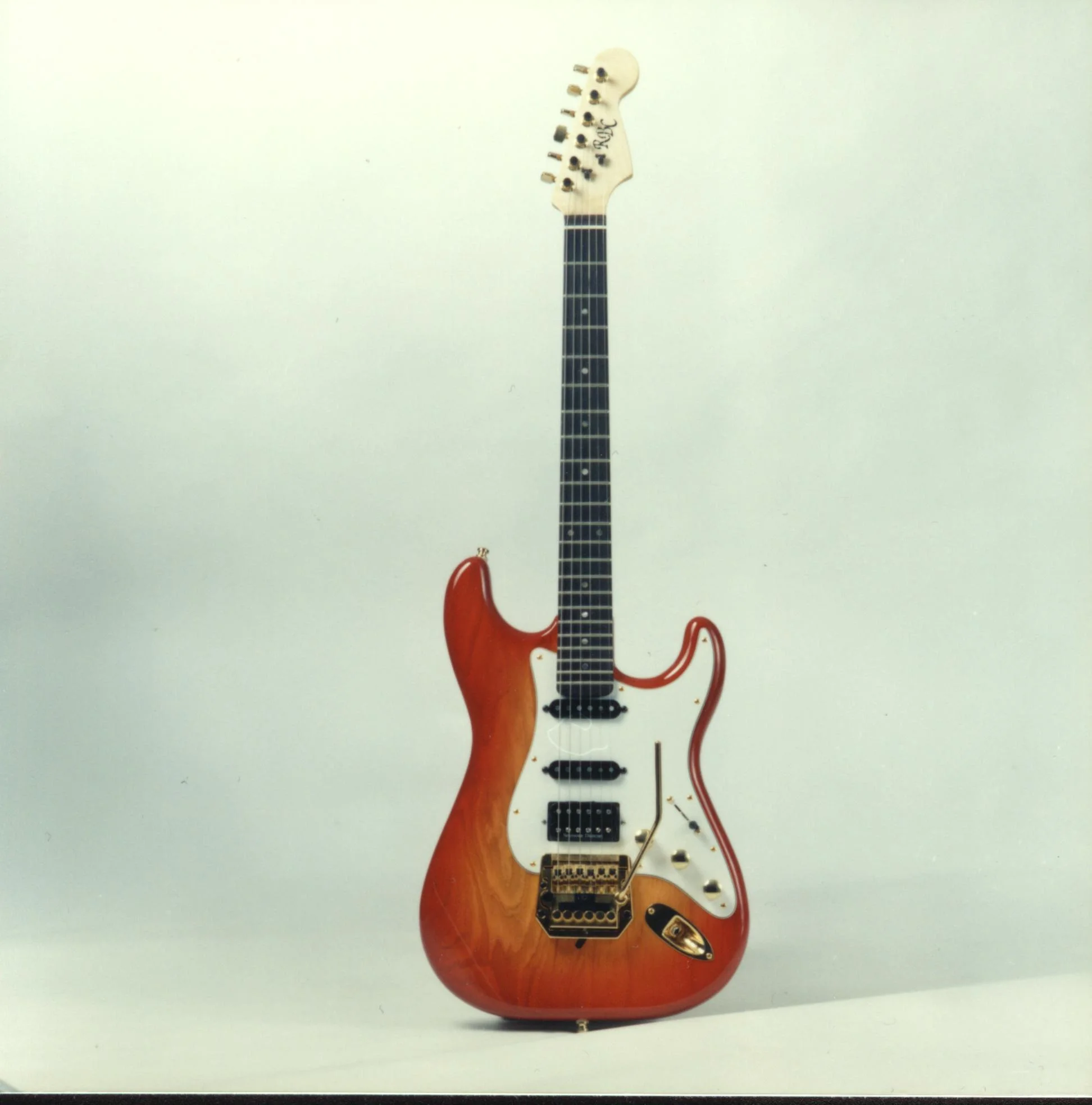 eine Ibanez RG321MH-RB meine erste ordentliche Git, einfach klasse das Teil, dünner Hals, geiles Finish, wunderschön gemasertes Griffbrett und der Sounde erst