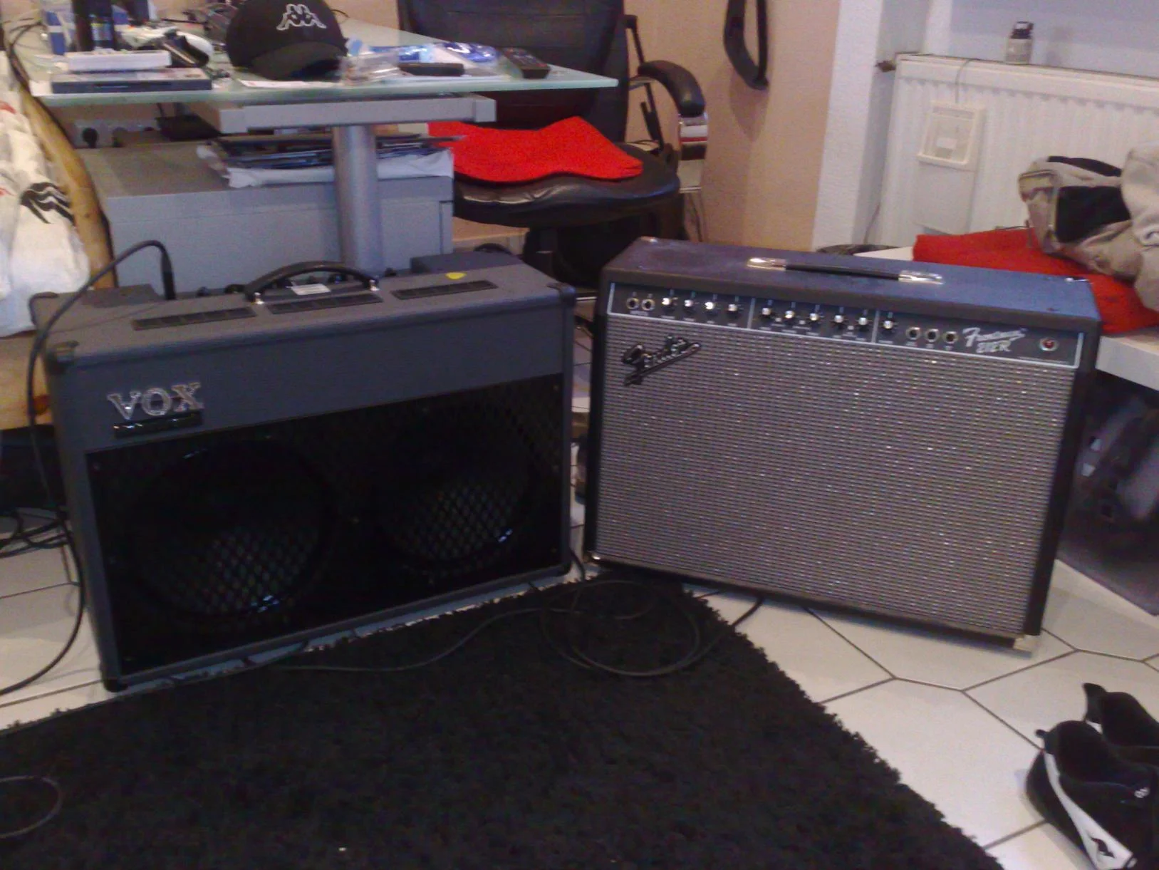 Zu sehen; meine neue Danelectro Dano Blue 59 und mein Vox 🙂