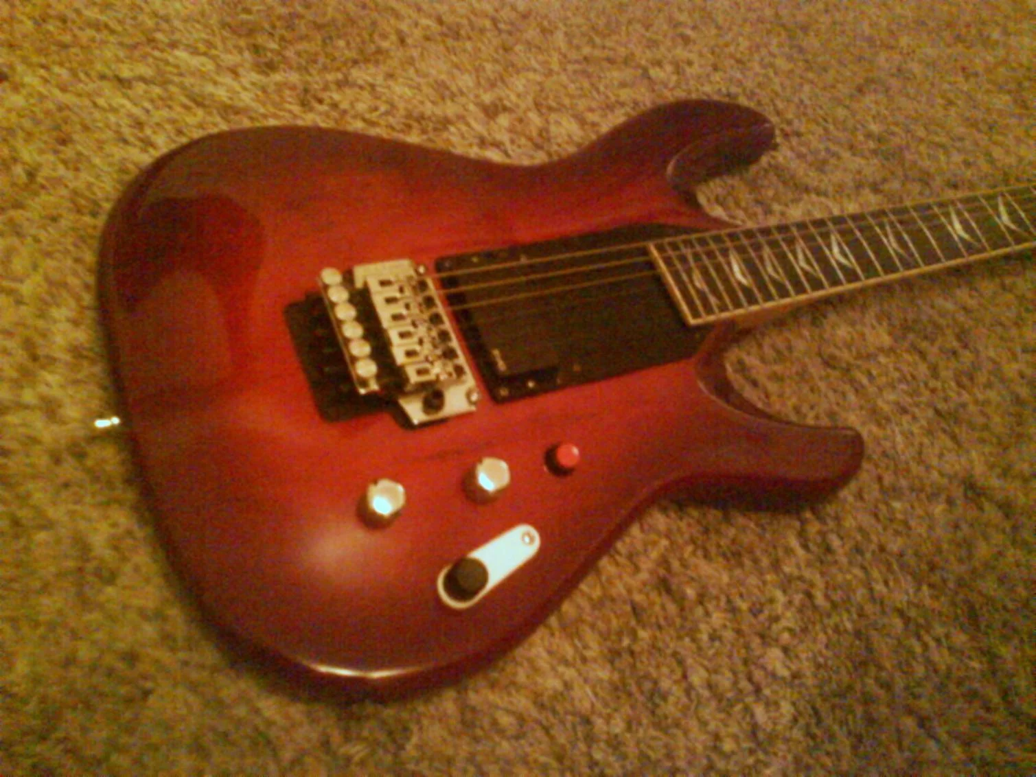 Ich selbst habe die Prestige SC1620. Die ist im Prinzip so wie deine, nur mit matter Nickel(?)-Hardware, keine Inlays, nur ein einziges Inlay im 12. Bund und eine einteilige Decke. Und die Abdeckungen für die Elektronik und den Halsstab sind alle aus Holz. EDIT: Und natürlich Halsbinding aus geflammten Ahorn! 😎
