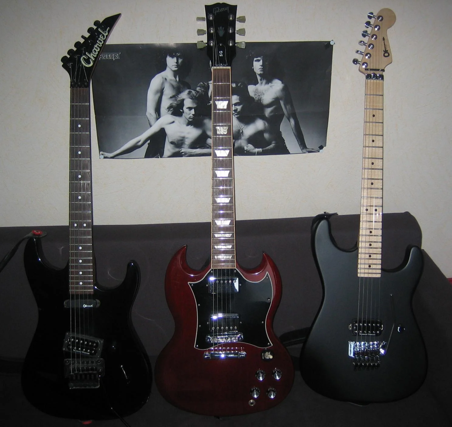 Schwarze Gitarren vor schwarzem Hintergrund ...![]()