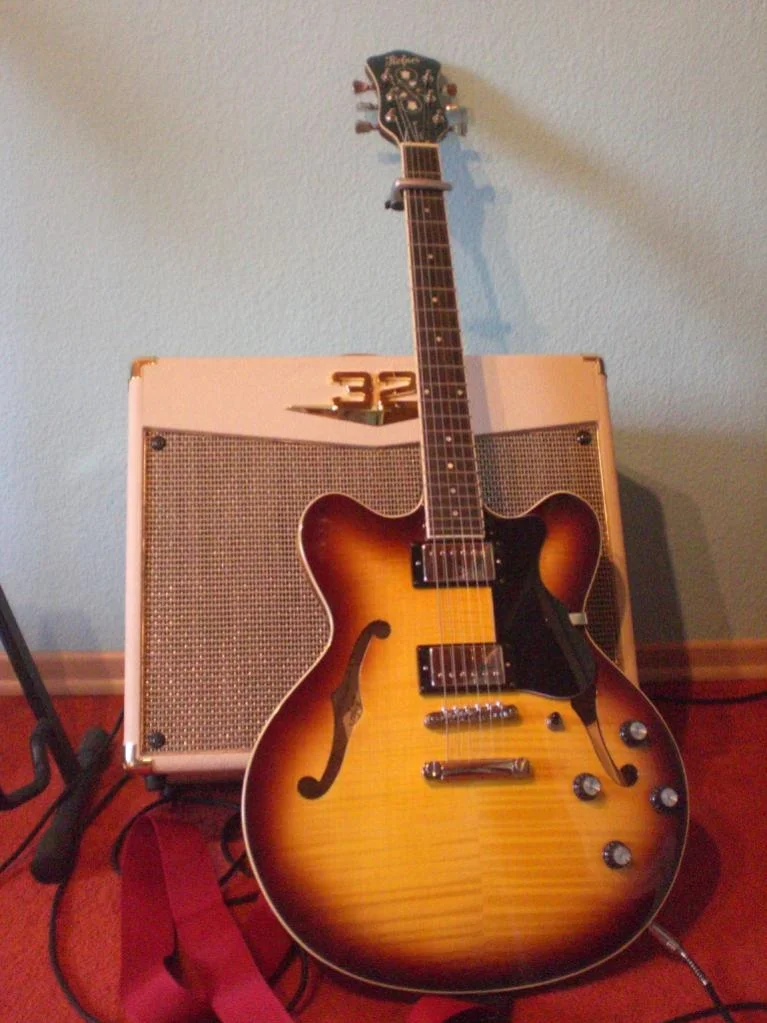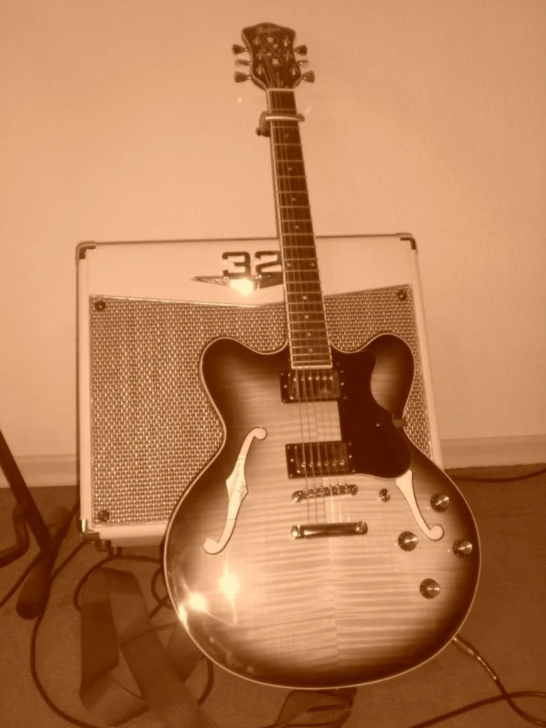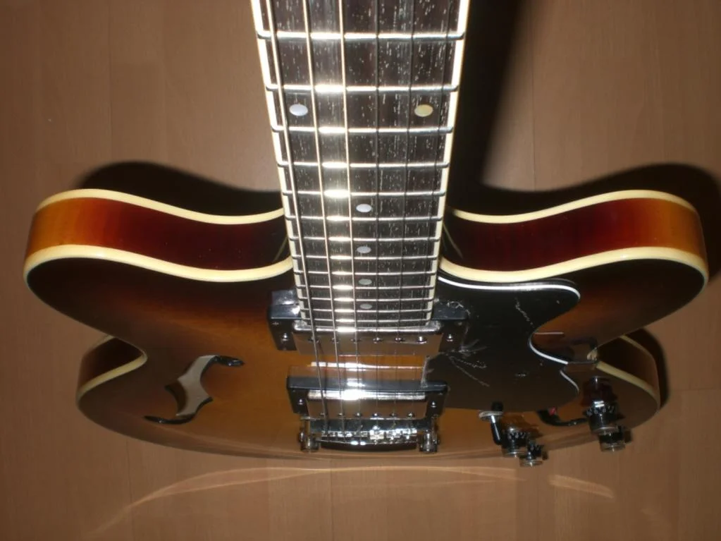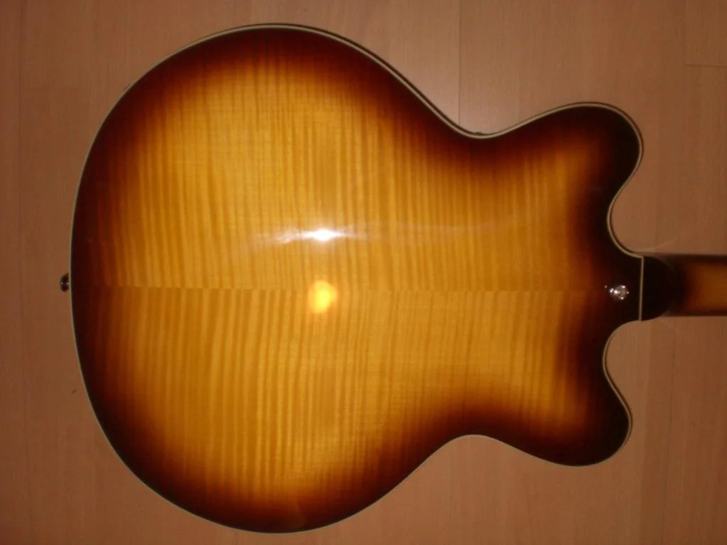 Die trifft voll meinen Geschmack! 🙂 Gefällt mir formmäßig besser als eine ES-335 und das Sunburst passt auch ganz wunderbar und das gefällt mir auch besser als das tropfenförmige Burst.auf vielfachen Wunschhabe gestern aber nur schnell mit einer Billigen Casio draufgehalten 🙂