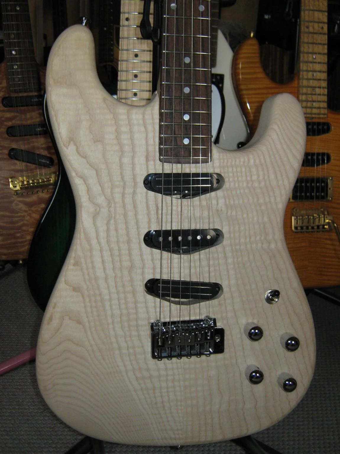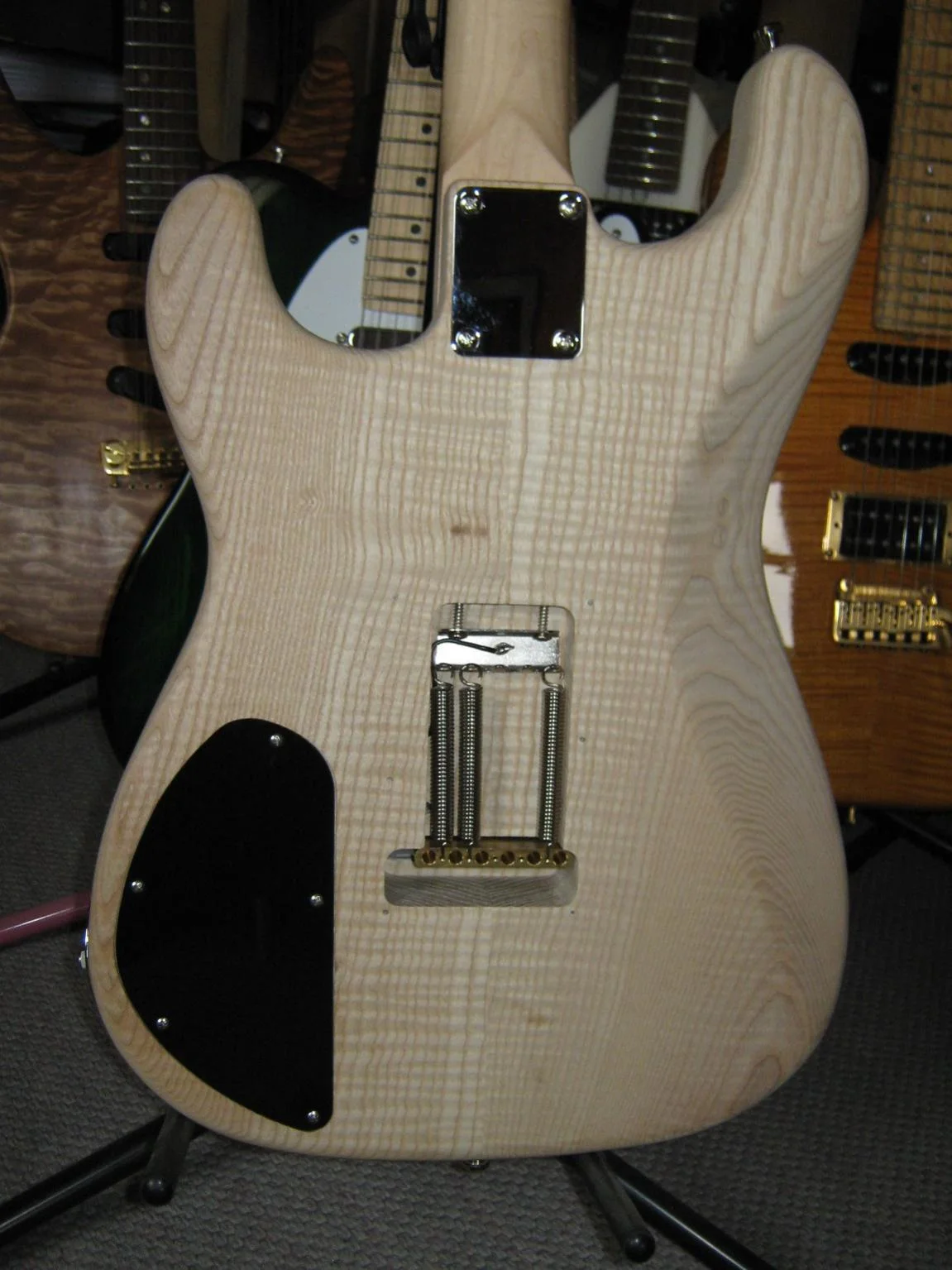 .Das Instrument ist aus Riegelesche, mit Riegelhals und Pal. Griffbrett. Tremolo ist ein ABM, mit Rollenreitern. Eingebaut wird noch eine Backbox. murle1Hallo I like Grunge,Ich hätte auch am liebsten ne harttailstrat, nur soweit ich weiss gibbet da nur die jim root und die is aus makaronie