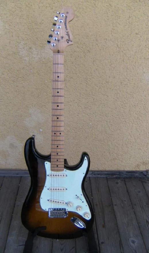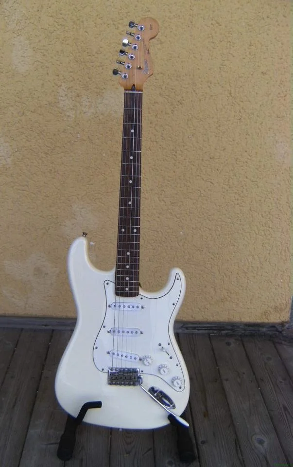 Squier Silver Serie von 1990 im Original-Zustand. Lediglich die Schaltung ist so geändert, das der Bridge-PU auch einen Tone-Regler hat.