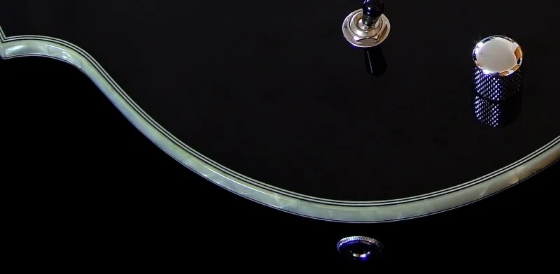Das Binding ist im übrigen Pearl (hab da auch noch n Bild wo mans besser sieht, das des kein Creme binding ist), wenns hell ist schimmert auch das Licht durch, geile Sache, owbol ich normal ja nicht so der Pearl Fan bin, aber ich finds passender als gar keins, oder das andere Extrem bunte Abalone (das hat mich an meinen 1000er LTDs so genervt)