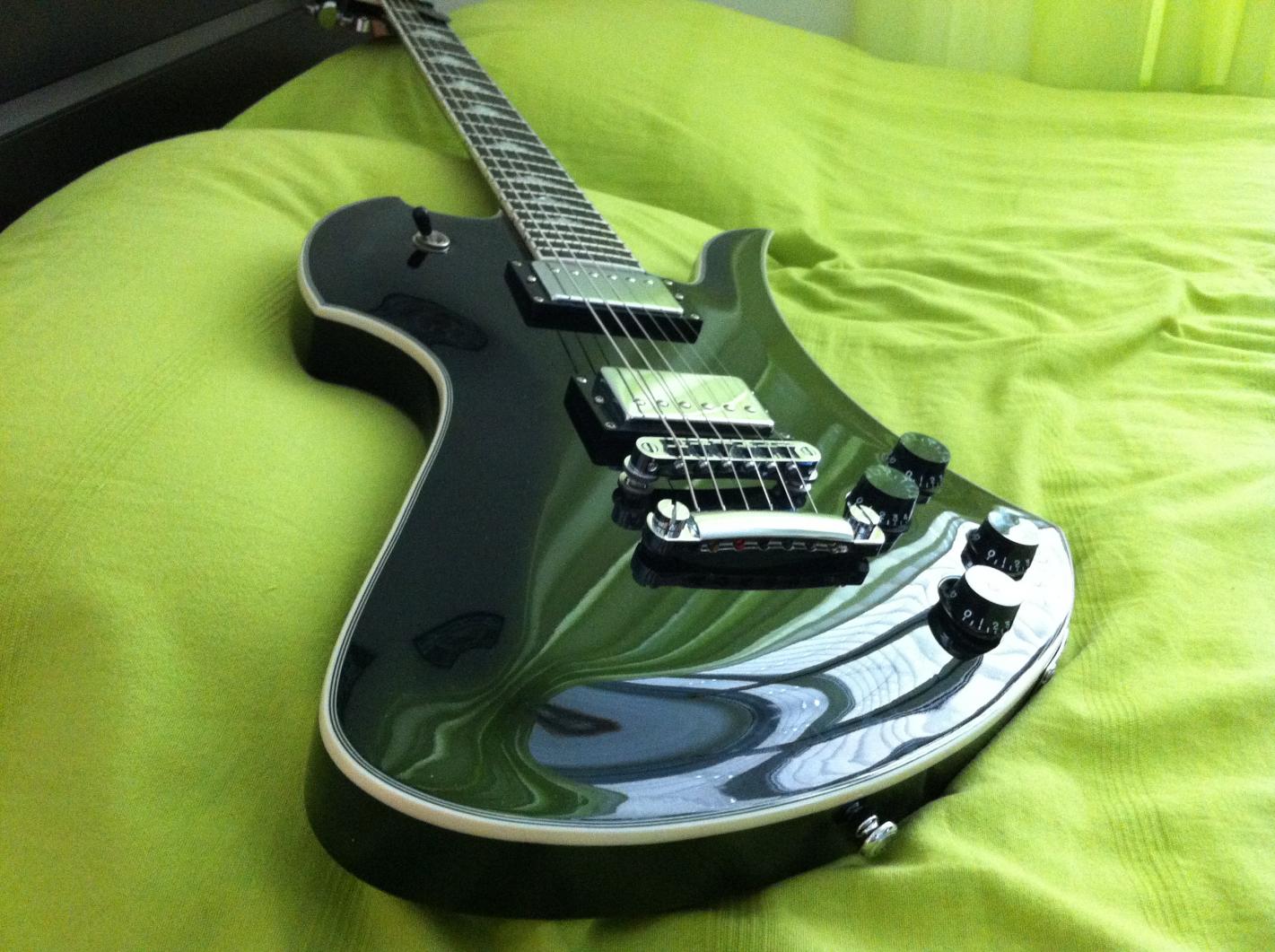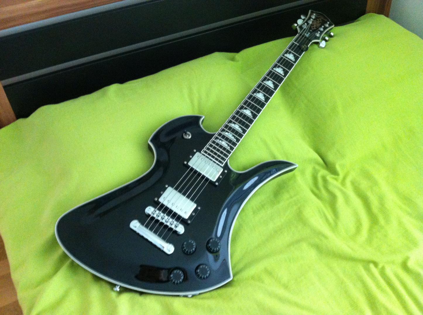 Hier ist meine Bc Rich Mockingbird Special, sie lässt sich wunderbar bespielen, ist vom Gewicht her ein wenig leichter als eine Les Paul.