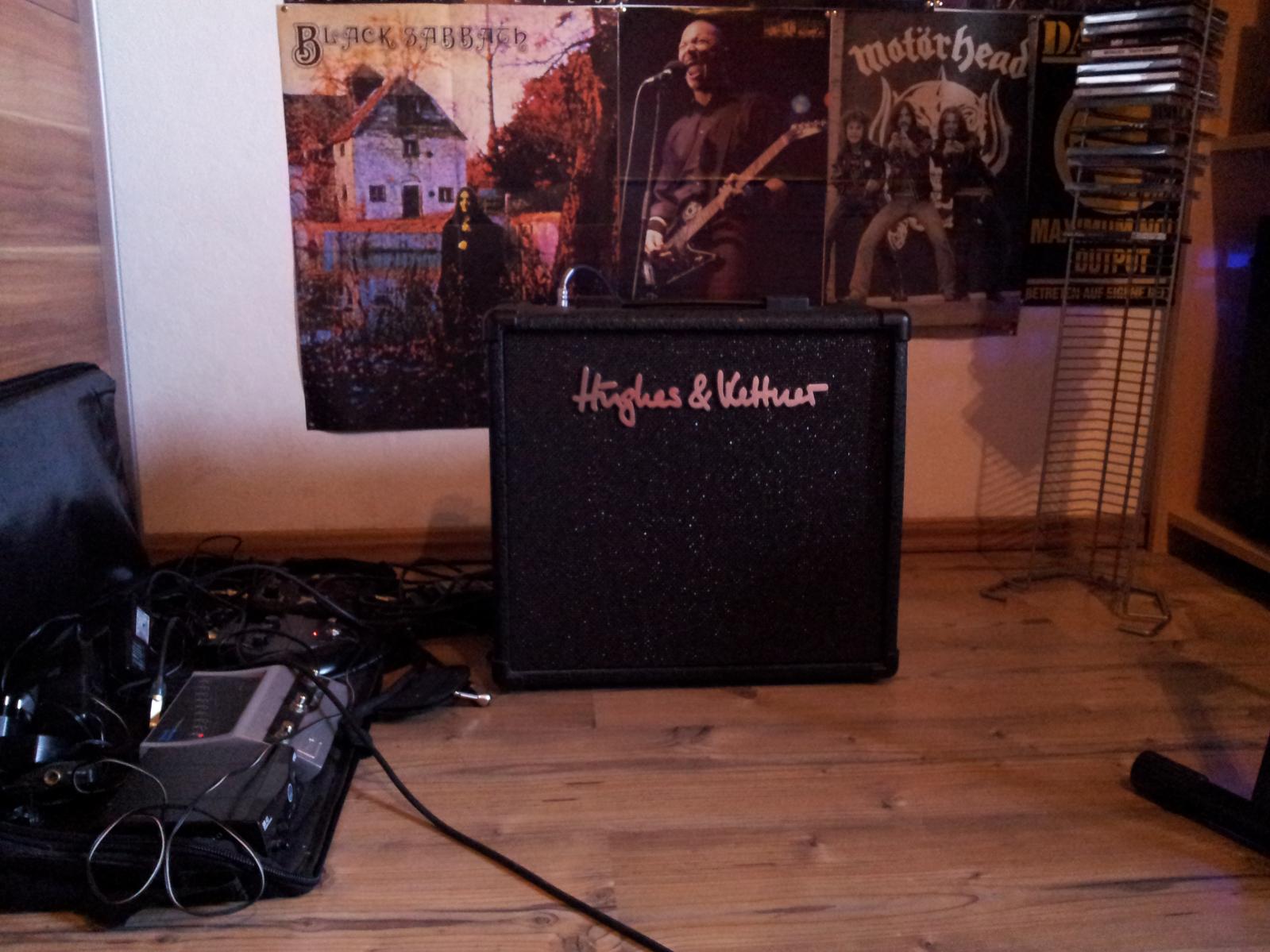 Fragen darf man mich faßt alles.Ich würde eher behaupten, daß ich einen ziemlich modernen Sound habe. Die Verzerrung kommt aus Vorstufen von Engl. Die Boxen sind Engl 4 x 12 PRO XXL bestückt mit Celestion Vintage 30. Es ist zwar nicht ganz so, wie es manchmal dargestellt wird, d.h. daß der Engl-Sound nur typisch "metal" ist - so eindimensional ist das auf keinen Fall - im Gegenteil. Ich liebe aber Metal-HighGain-Sounds und da sind die Engls einfach stark, was am Ende natürlich auch eine individuelle Geschmacksfrage ist. 80's-Sound ist aber natürlich auch drin.