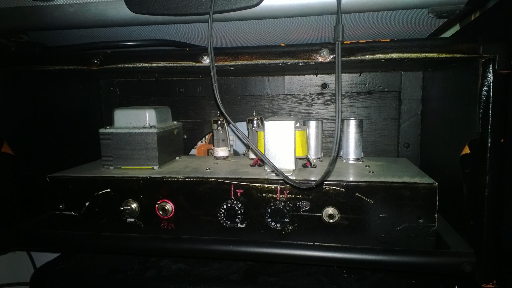 18 Watt Vollröhre, pottenhässlich, total uncool, aus 3 No Name Amps gefrankensteint, aber laut wie die Hölle und klingt hammergeil ;-D