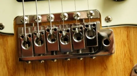 Schöne GitteDas Wilkinson Tremolo mit Stahlblock habe ich wieder gegen das ursprünglich verbaute seltsame mit Messingblock zurückgetauscht.