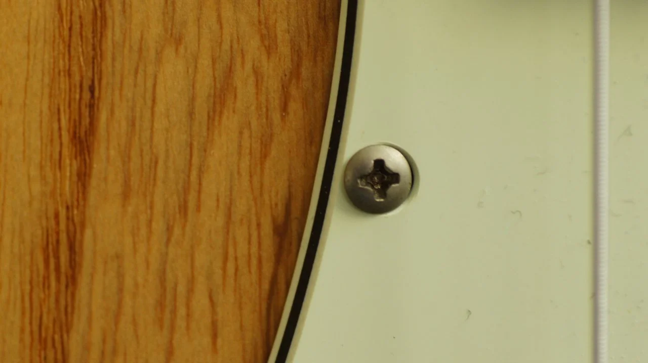 - das macht sie zum Unikat.Es ist ein sonst eigentlich sehr gut gemachter Eigenbau, nicht von mir. Wurde auch schon etwas herangenommen = Spielspuren. Eine ganz hervorragend klingende Strat. Meilenweit besser als meine Classic Vibe. Na ja, besser gesagt ziemlich anders und vielseitiger.Ist es das original Pickguard bzw. die Originalschraube oder wurde das mal getauscht?