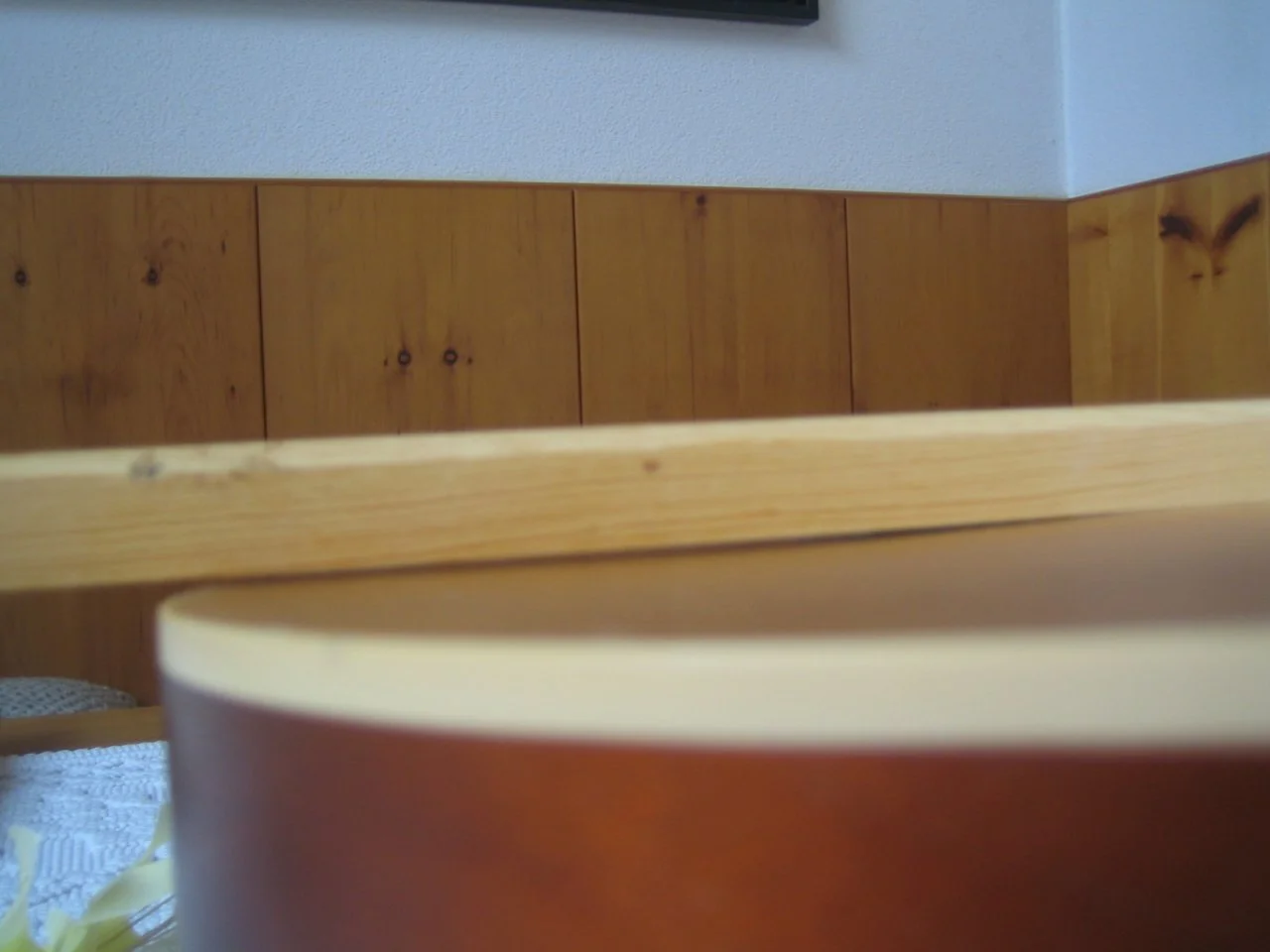 Ich habe die Gitarre schon so bekommen, kenne also ihr Vorleben und die Ursache des abgelösten Stegs nicht wirklich. Da mir die Wölbung ja schon vorm verleimen aufgefallen ist, habe ich natürlich die Beleistung innen kontrolliert. Was man machen kann, ist die Beleistung noch mal äusserlich nach zu leimen, also Leim auf den Finger und an den Leisten lang fahren, aber onb das was nutzt, kA. Ich hab mir ein Bild der Beleistung im Netz angesehen, kann man nicht einfach in dem Bereich die Decke mit einer passenden Holzplatte verstärken, im Bereich der Saitenaufnahme ist ja bereits eine Versärkung aufgeleimt, diese quasi verlängern im Bereich der ´Beule´?