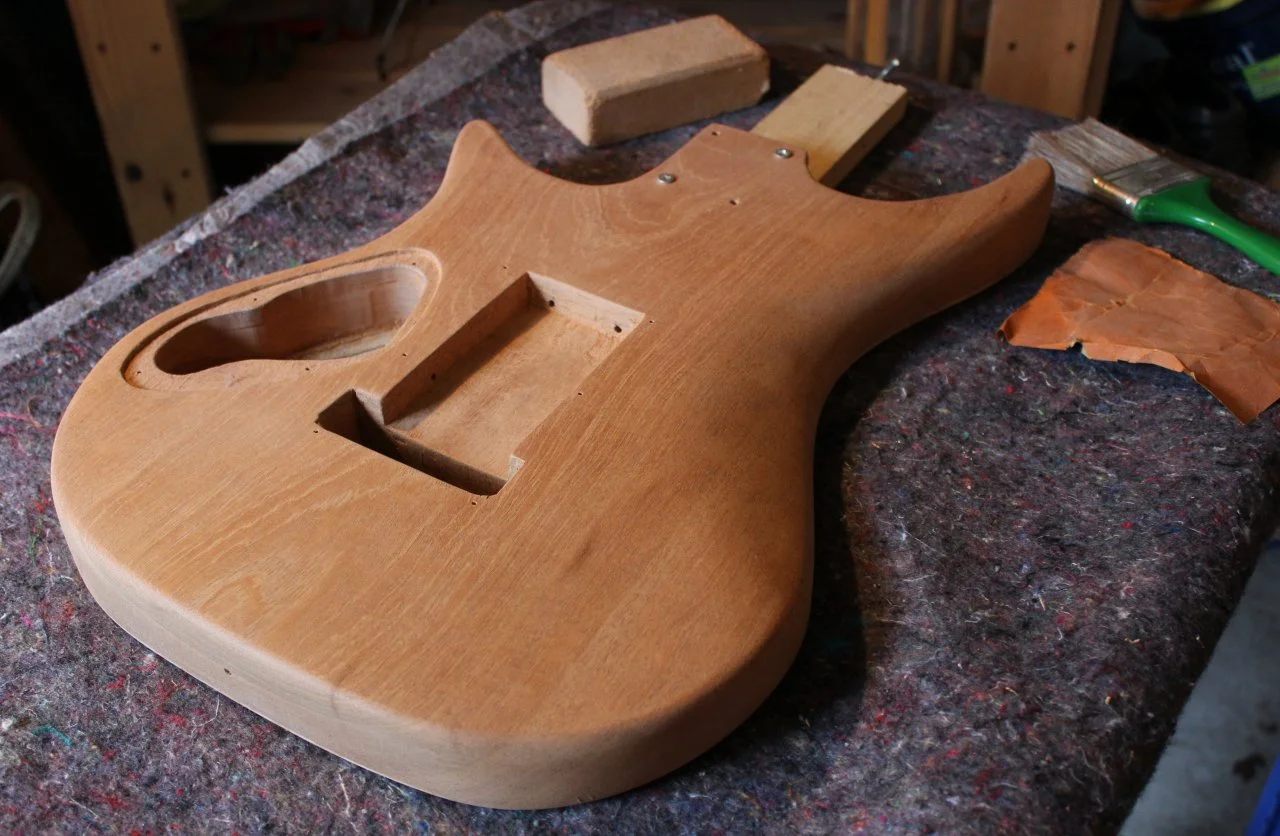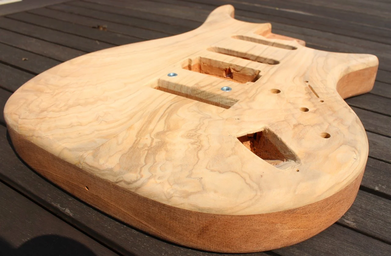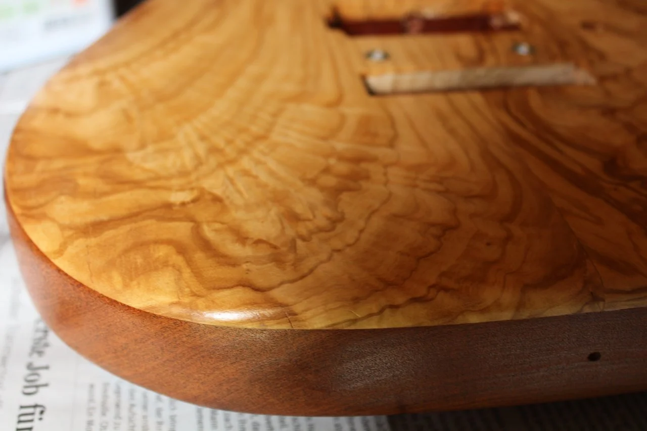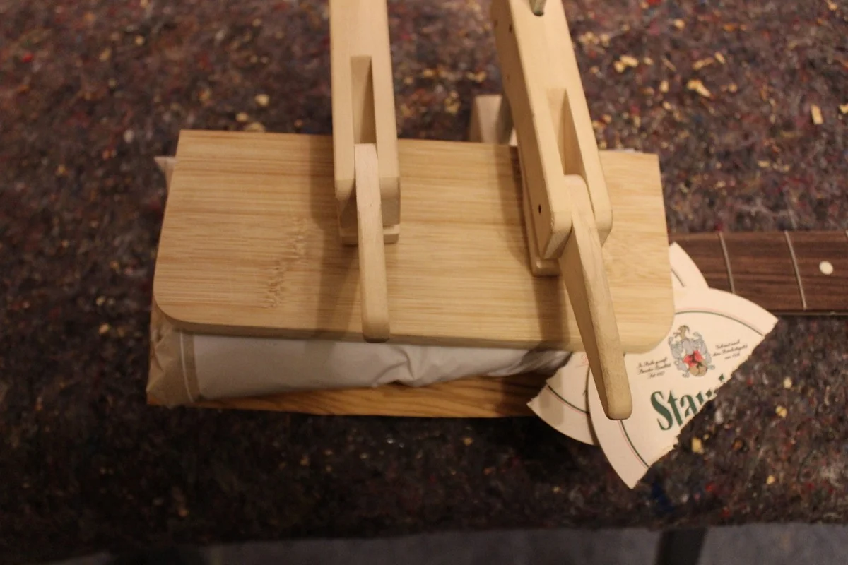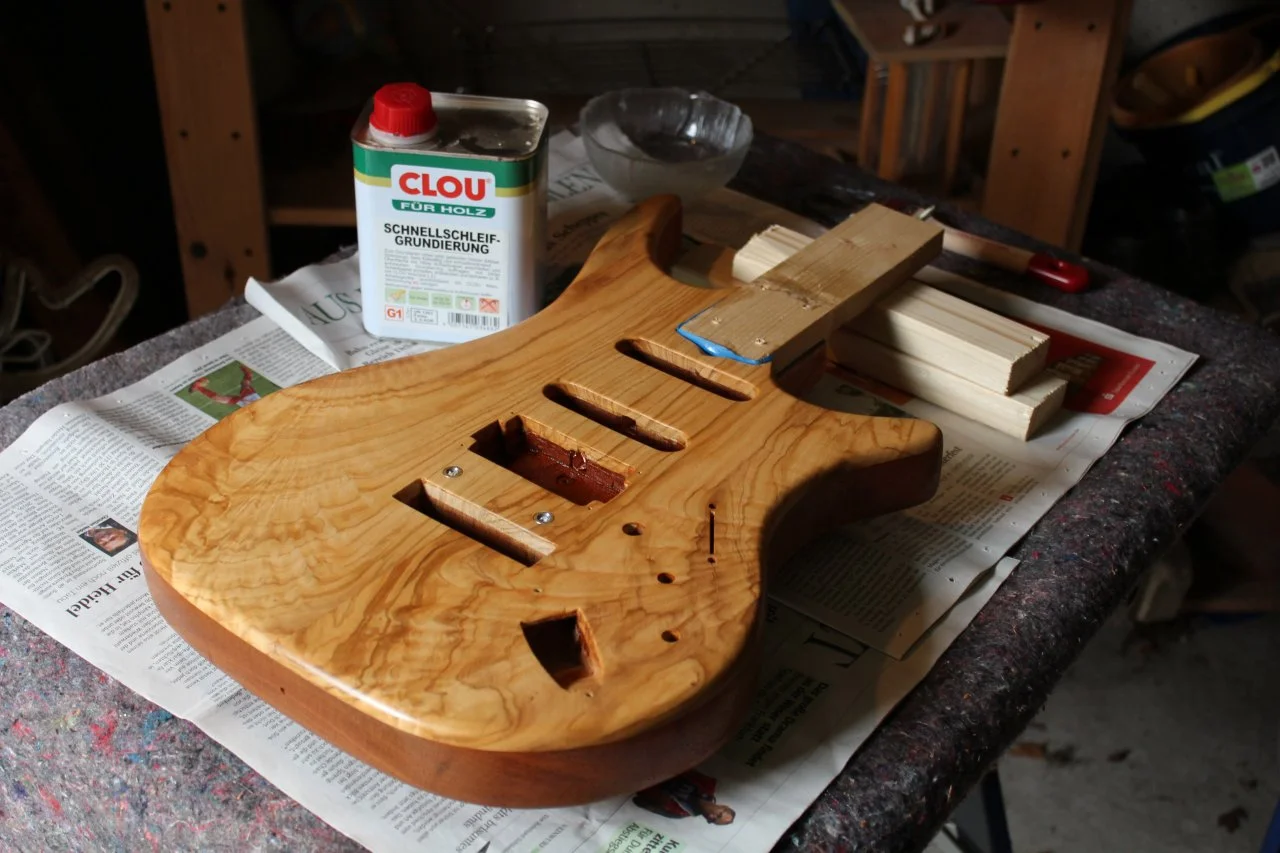 http://www.designholz.com/. Das Furnier ist auch schon angekommen, werde ich dann als nächstes in Angriff nehmen. Anschließend wollte ich vom Hals nur die Kopfplatte lackieren, die Rückseite ölen und wachsen. Habe ich bei meiner Strat auch neulich gemacht, nachdem sich der Lack so langsam in Wohlgefallen aufgelöst hatte. Fühlt sich ganz gut an.