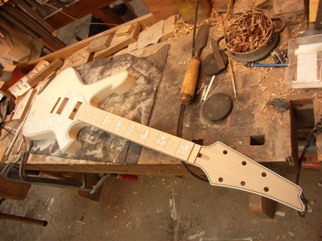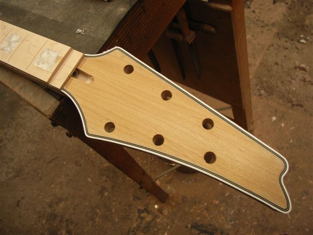 Damit die zur Optik der Gitarre passen, montiert der Jochen noch verchromte Neusilberkappen drauf.