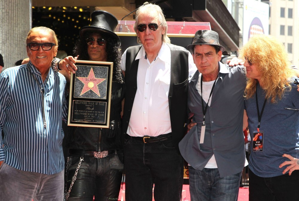 Ob Slash was gegen Steven hatte weiß ich nicht. Ich glaube aber eher nicht. In seiner Autobiografie kommt ja raus, dass die beiden ziemlich gut befreundet waren, sich aber dann auseinandergelebt haben. Trotzdem haben die beiden wohl heute noch Kontakt. Slash soll ja auch ziemlich gut mit Charlie Sheen befreundet sein und hier hab ich mal ein interessantes Bild gefunden. Slash, als er seinen Stern auf dem Walk Of Fame bekommen hat. Der blonde Wuschelkopf ganz rechts ist doch Steven, oder? :redface: