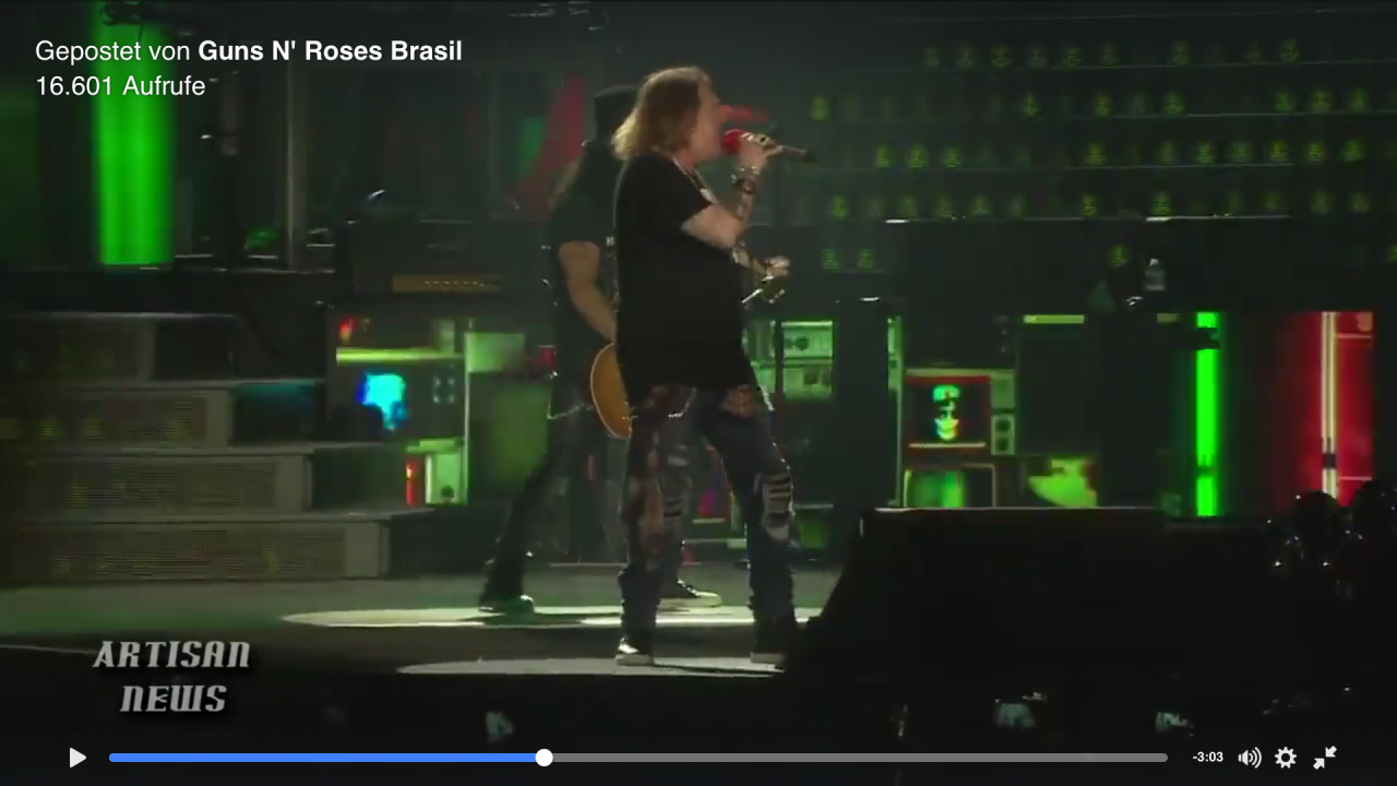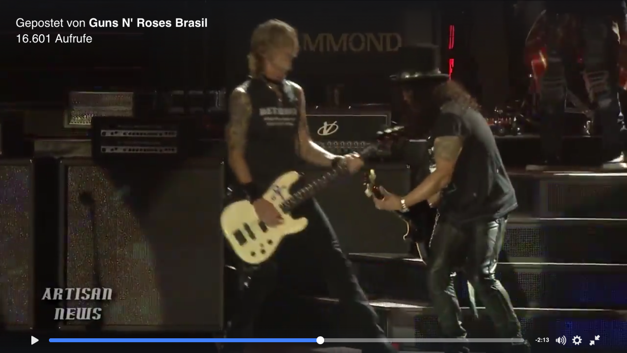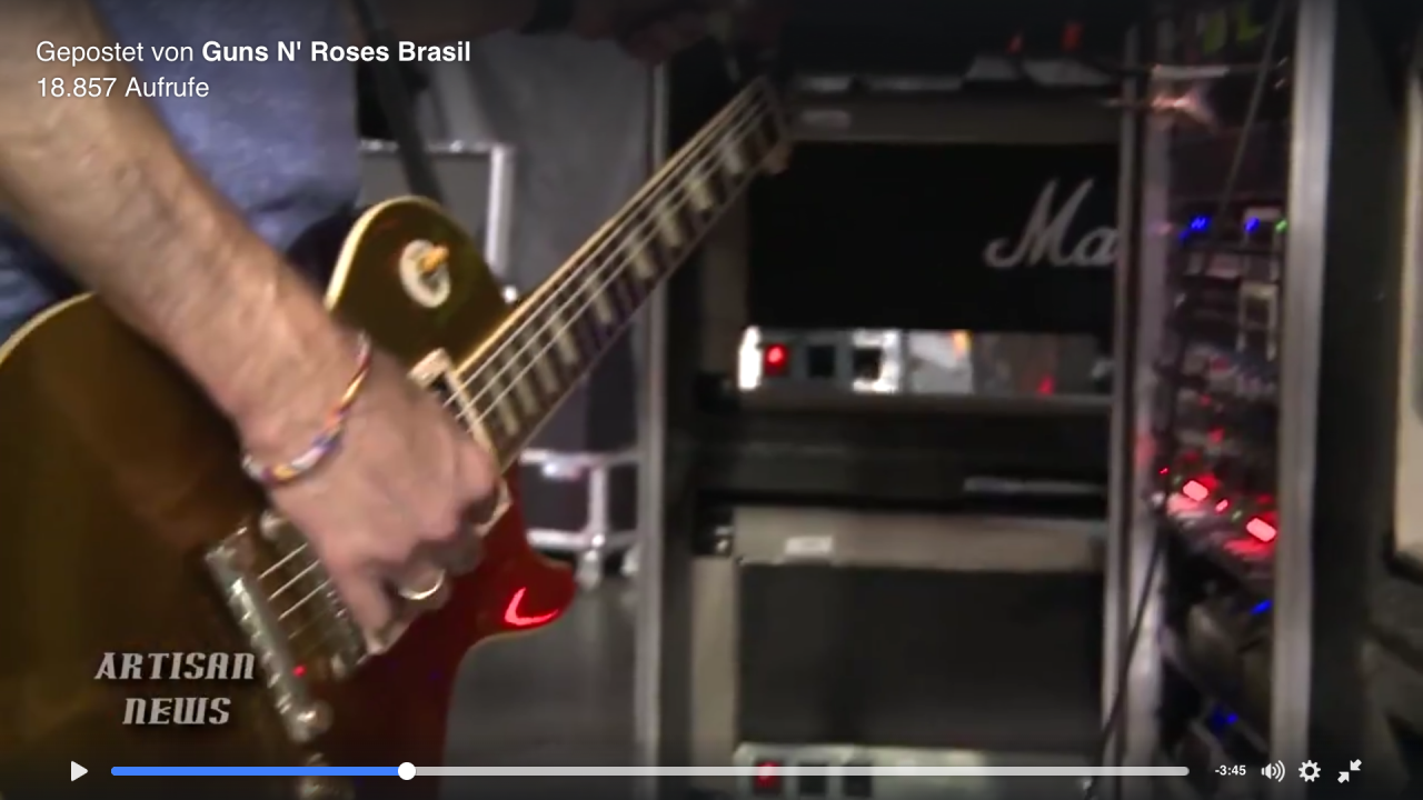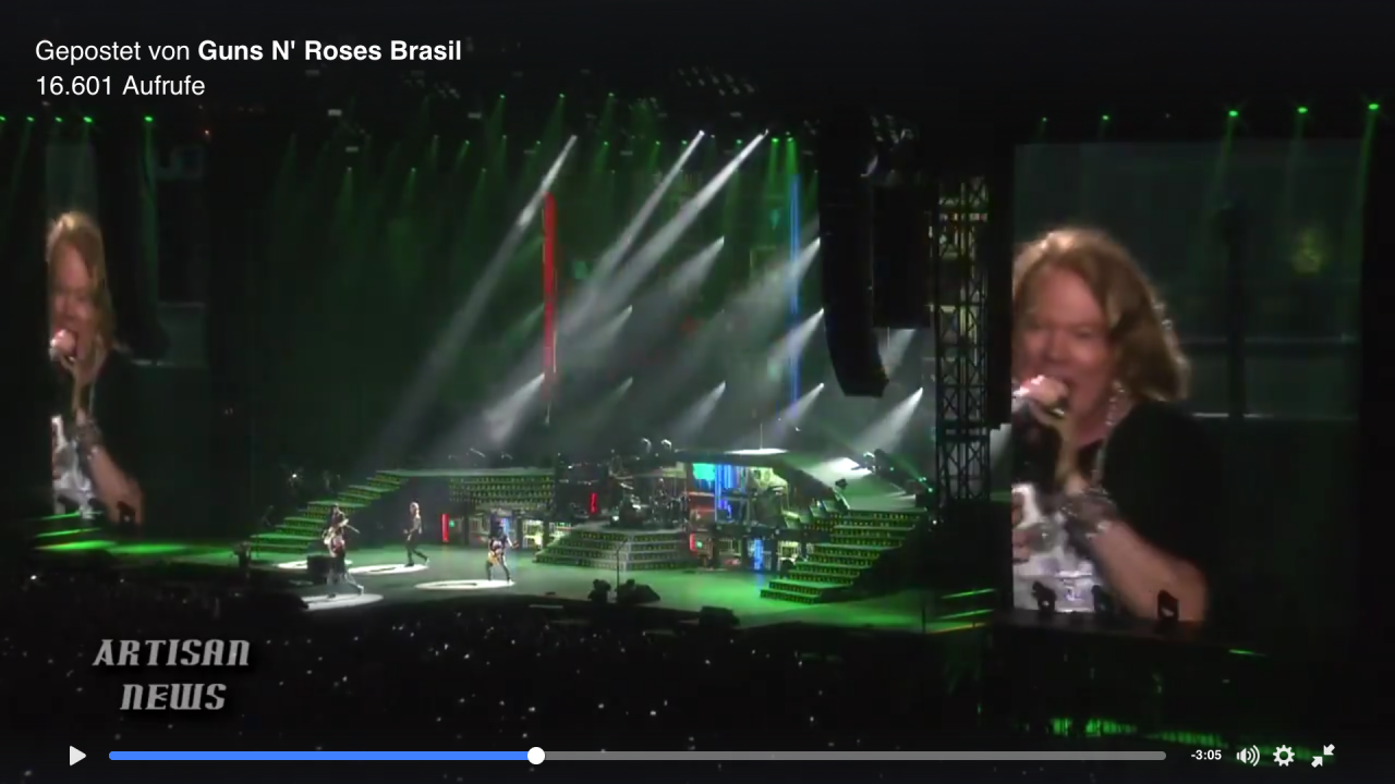 Wurde gerade etwas von der Fake-Backline irritiert, welche offenbar nur ein zeitweise an eine echte Backline erinnerndes, rein optisches Showelement ist (inkl. Fake-Marshall-Heads). Würde dann ja nahelegen, dass auch Slash bzw. alle über InEar spielen. Soweit ich das beurteilen kann, Premiere.