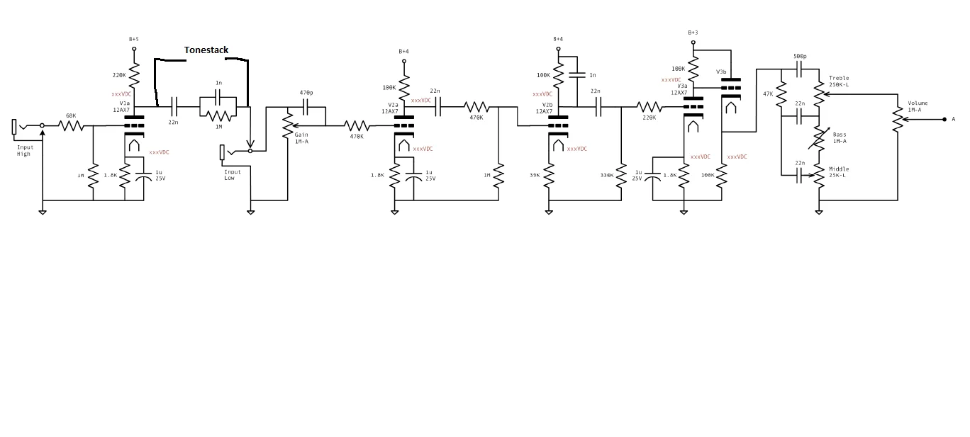 Den Tonestack würde ich auf Marshall Stil aufbauen, nur eben mit den Schaltungsmöglichkeiten des GP-1000.